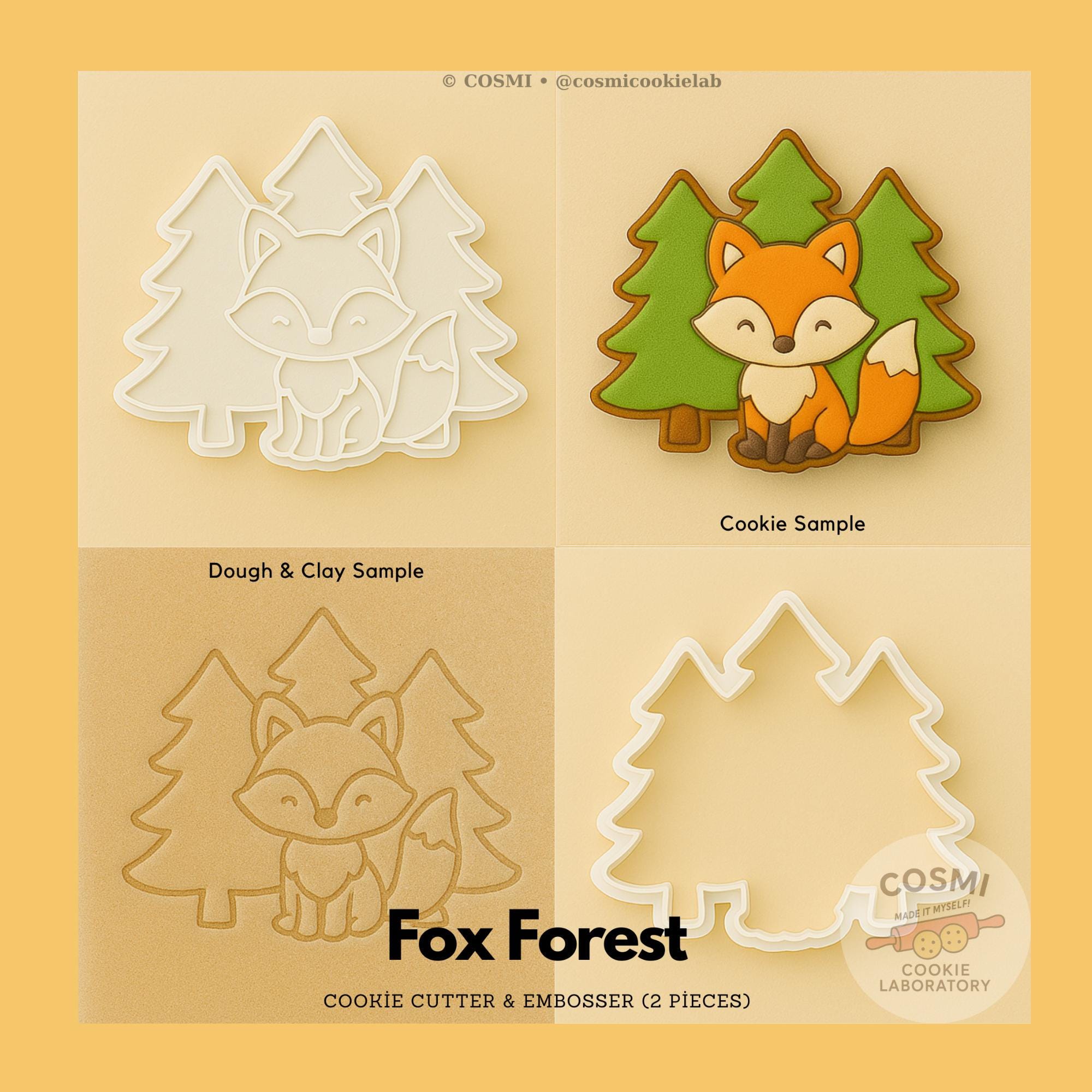 Bring woodland charm to your baking with our Fox in Forest cookie cutter and fondant embosser. This adorable design features a smiling fox sitting among pine trees, making it perfect for forest-themed cookies, fondant toppers, or clay crafts. A delightful addition for woodland parties, baby showers, or autumn dessert tables.