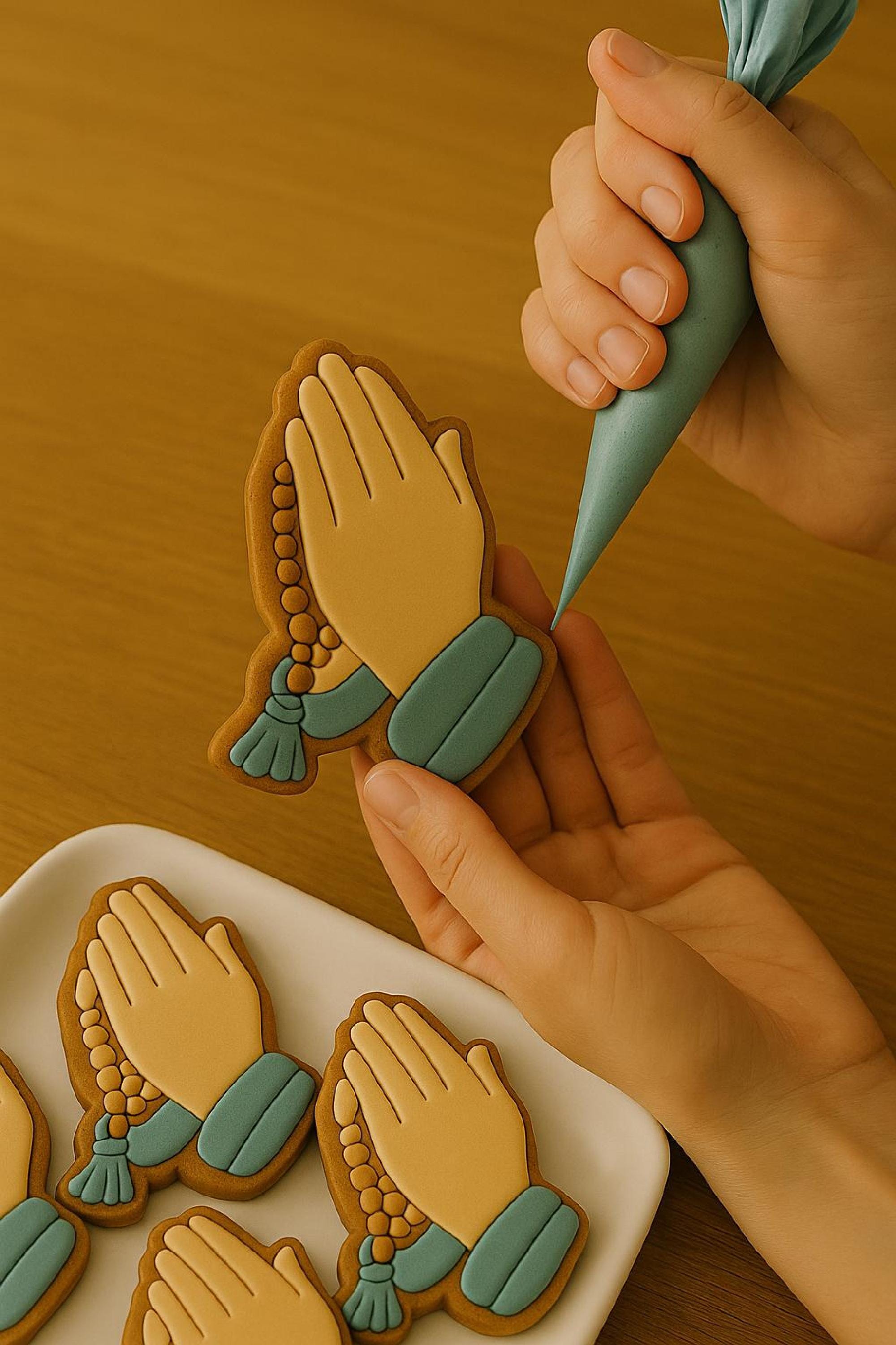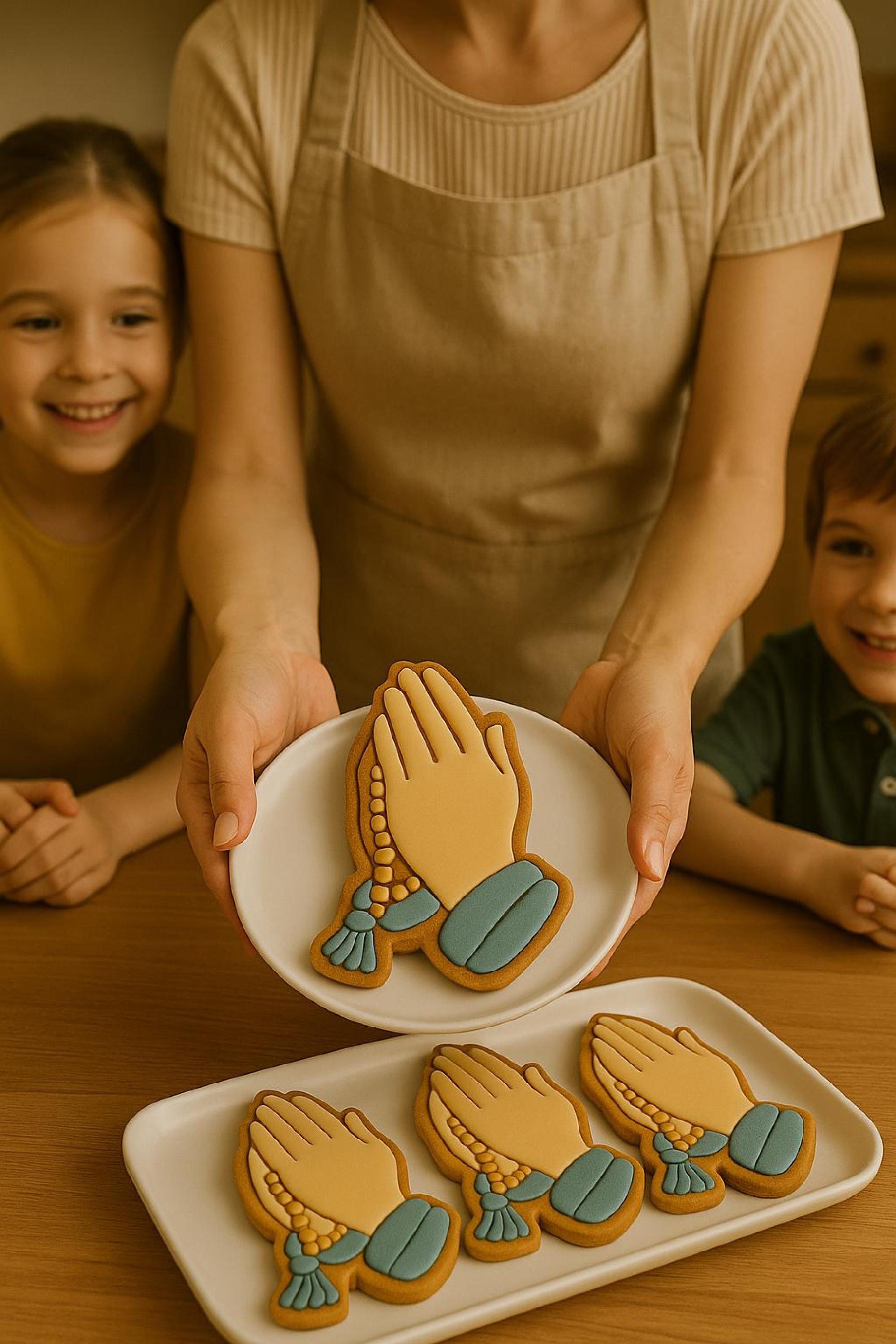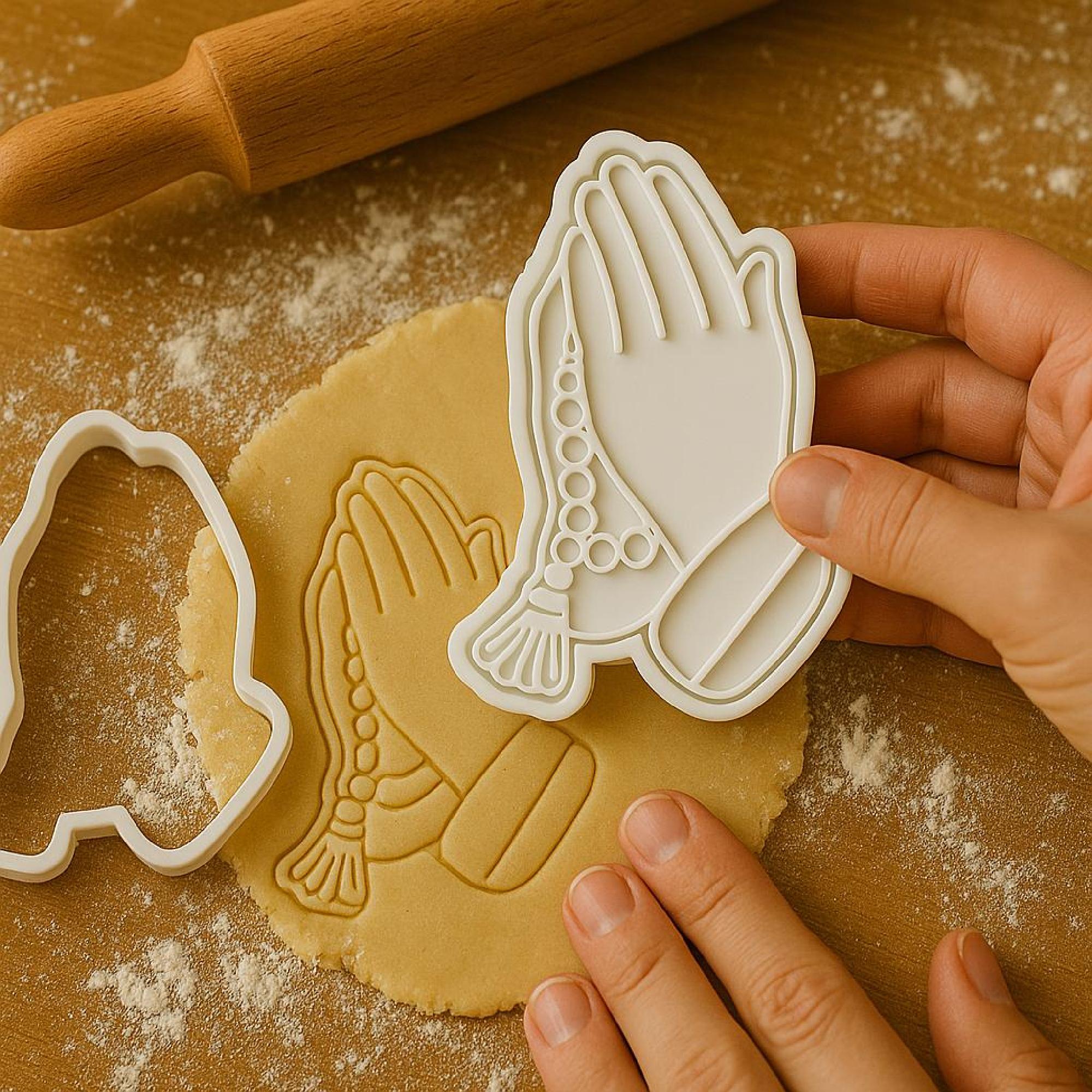 Bring your faith to the kitchen with this praying hands cutter and matching cookie embosser. Whether you’re baking for a baptism, church event, or simply want a thoughtful church snack idea, this set will help you create treats that feel special.