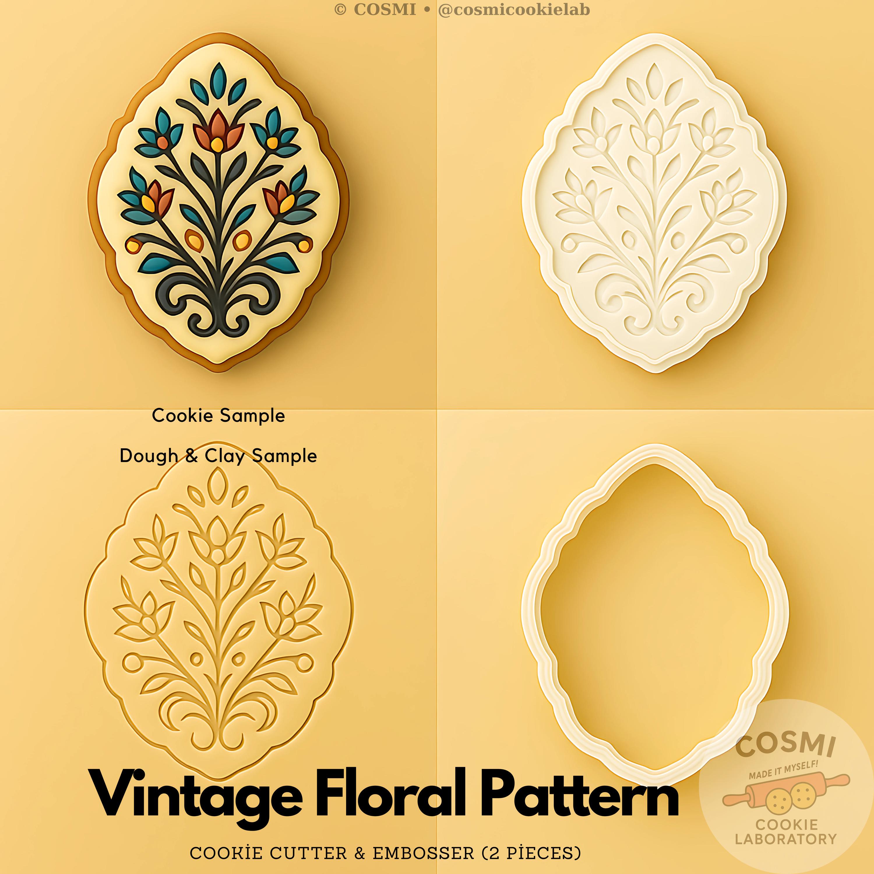 Add timeless elegance to your creations with our Floral Ornament cookie cutter and fondant embosser. Featuring a botanical-inspired pattern with intricate flower and leaf details, this design is perfect for classic cookies, fondant toppers, or clay projects. Ideal for weddings, tea parties, and festive dessert tables.