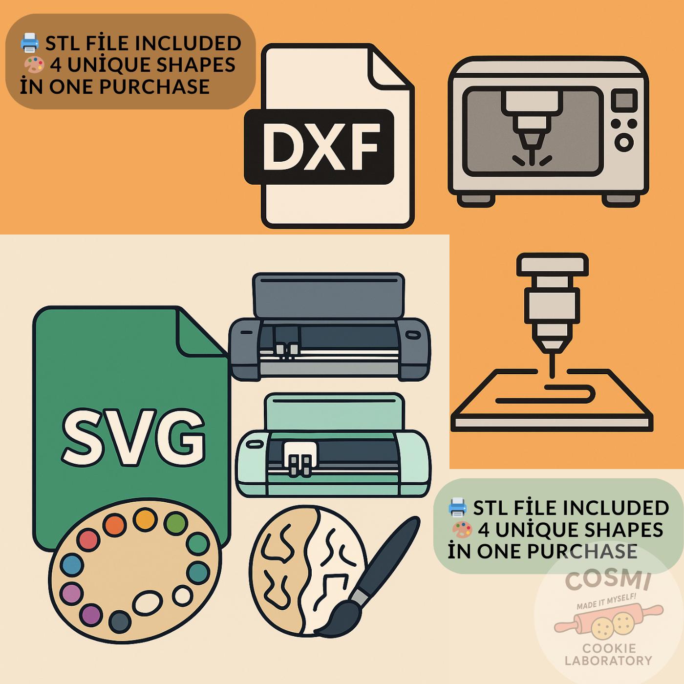 3- File Formats Included: .STL (3D printers), .DXF (laser/CNC cutters), .SVG (Cricut/Silhouette & vinyl plotters).