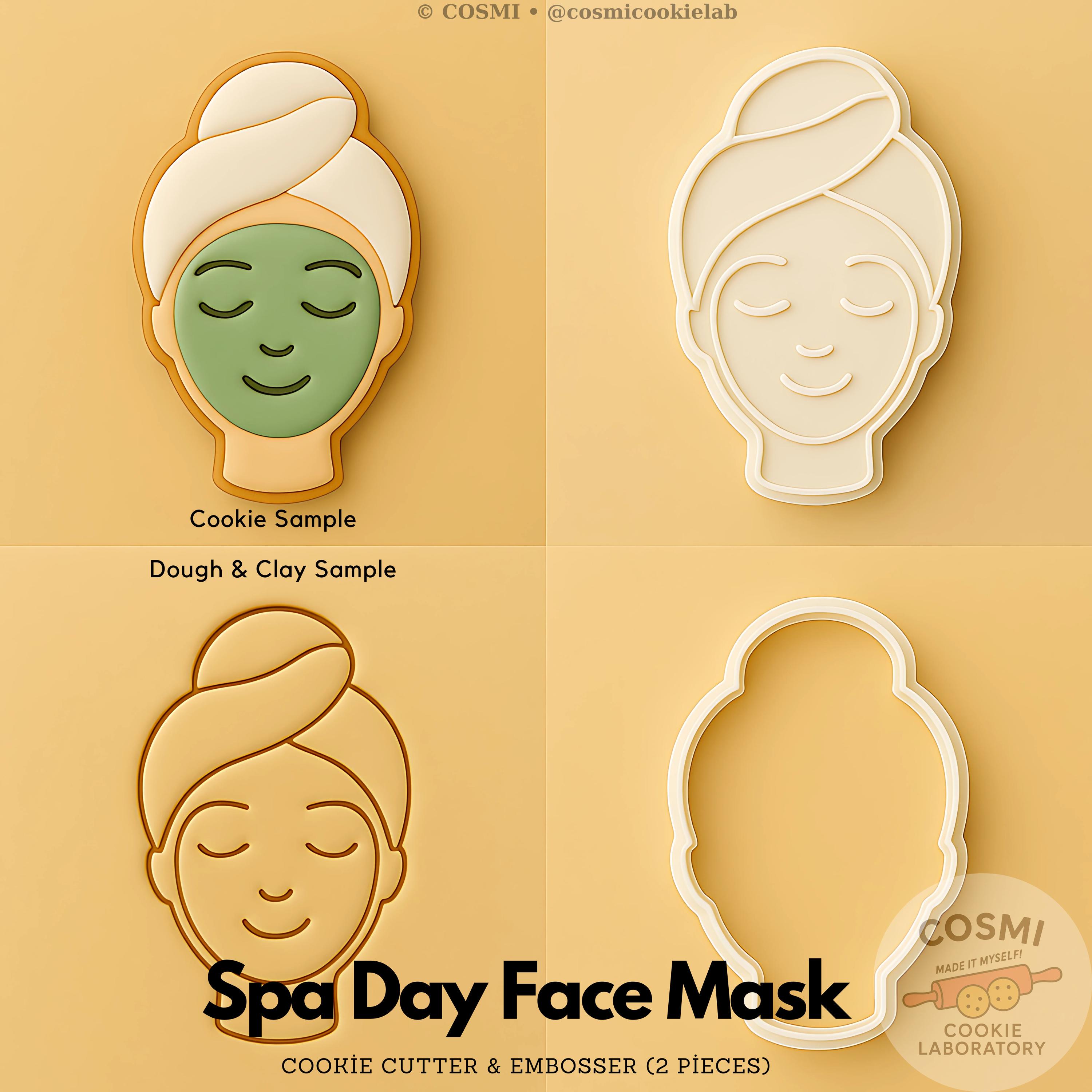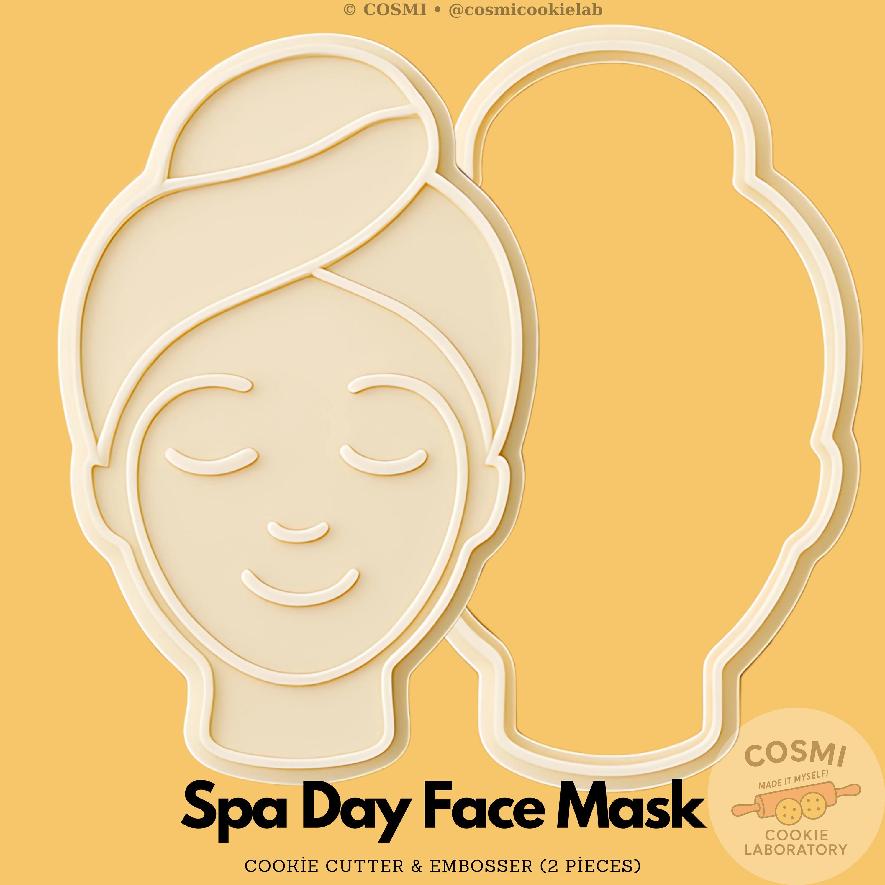 Spa Day Face Mask Cookie Cutter and Embossing Stamp Set for Self-Care Treats