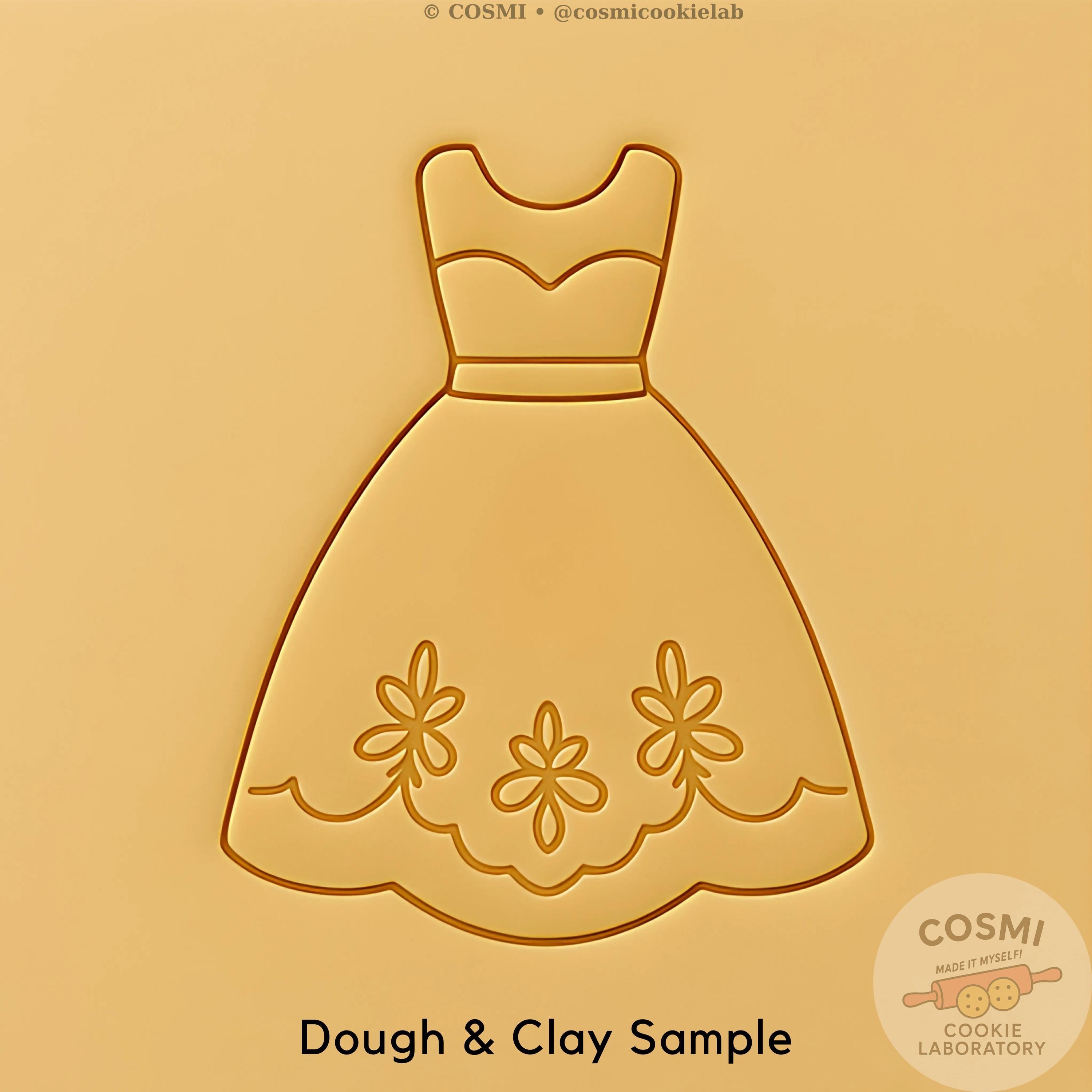 Elegant Dress Cookie Cutter and Embossing Stamp for Wedding and Bridal Shower Cookies