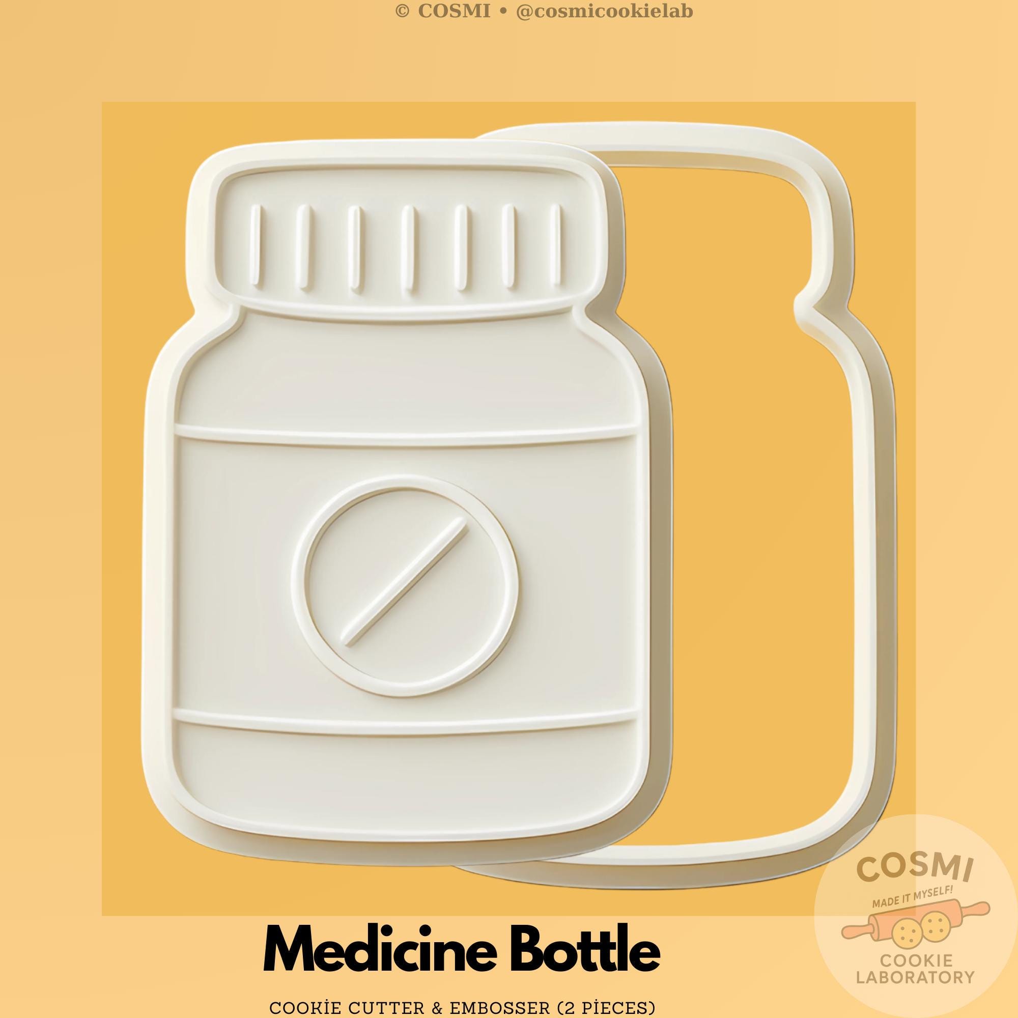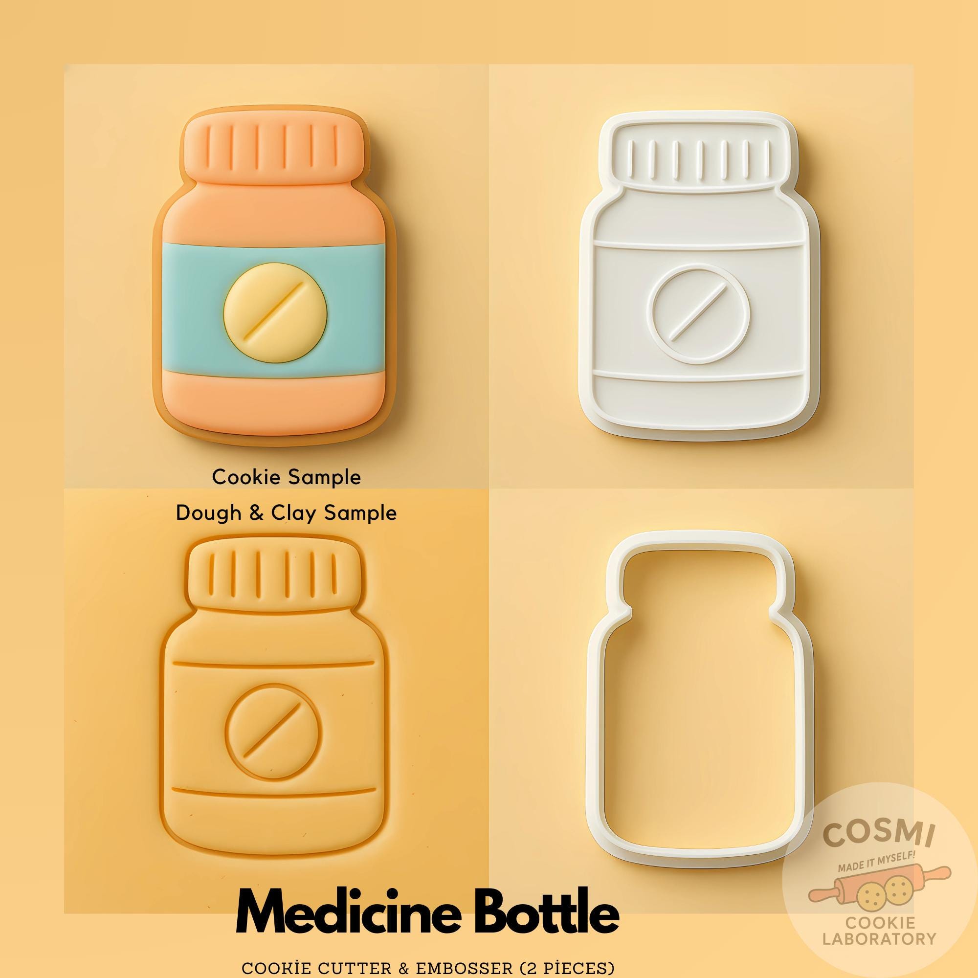 Medicine Bottle Cookie Cutter and Embossing Stamp for Health-Themed Cookies