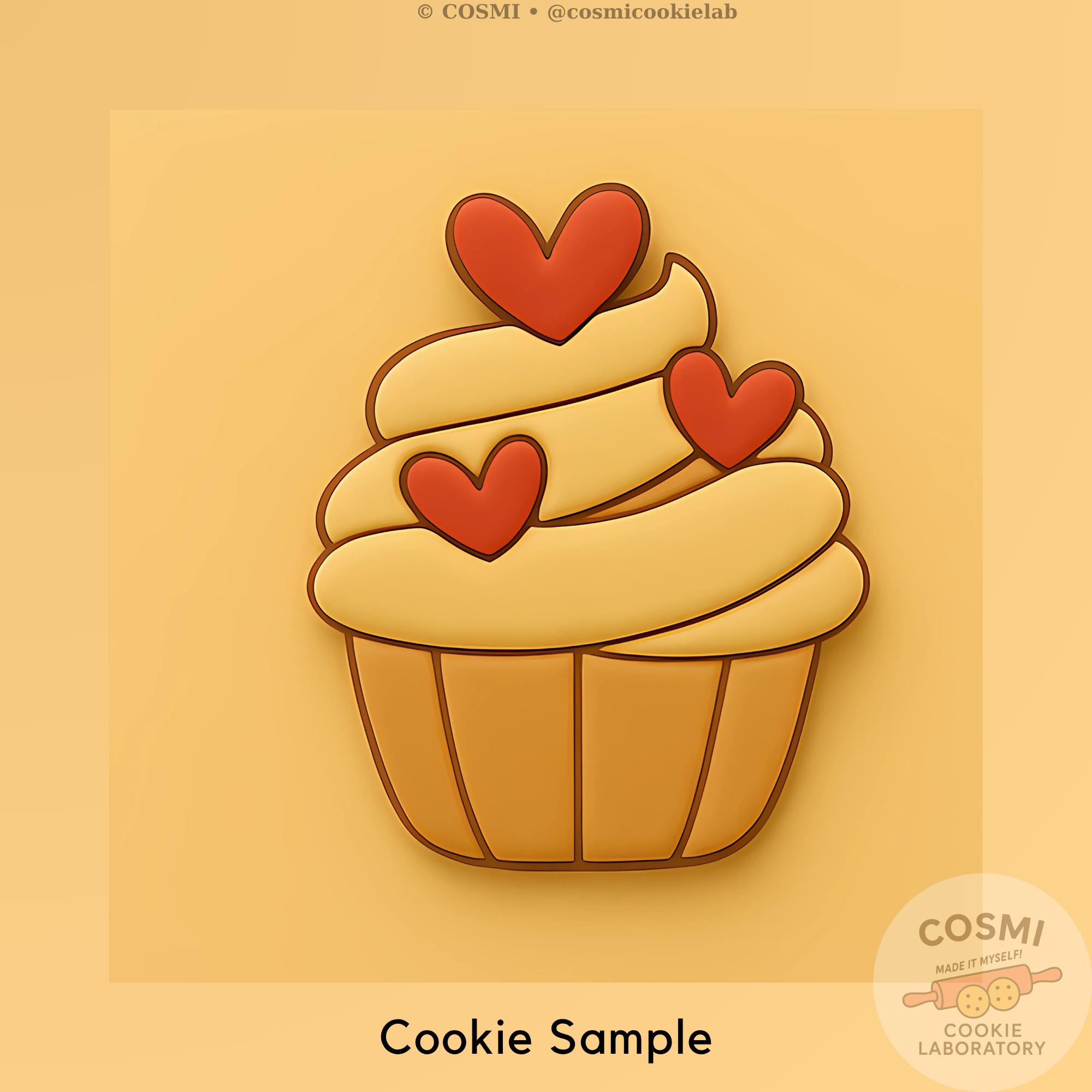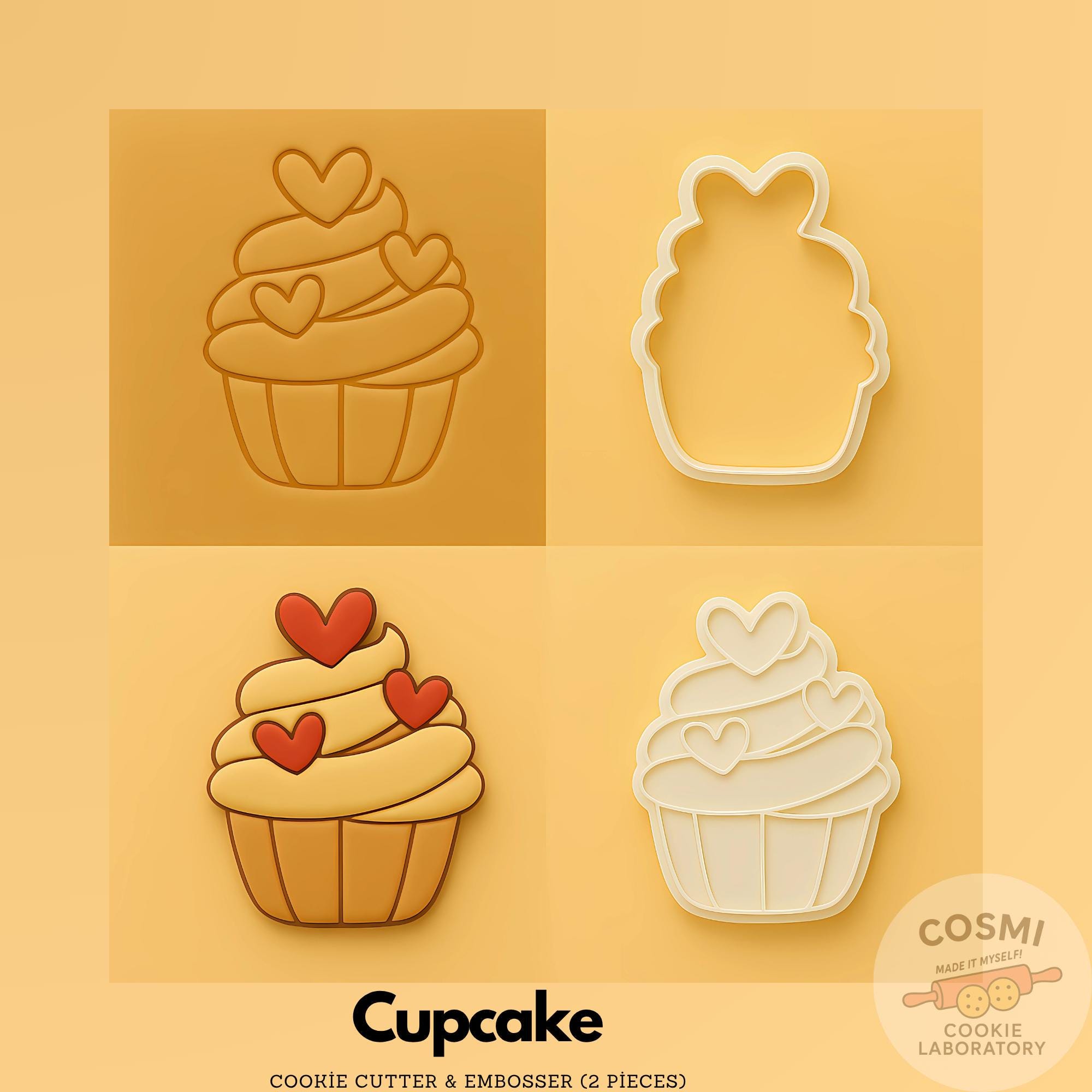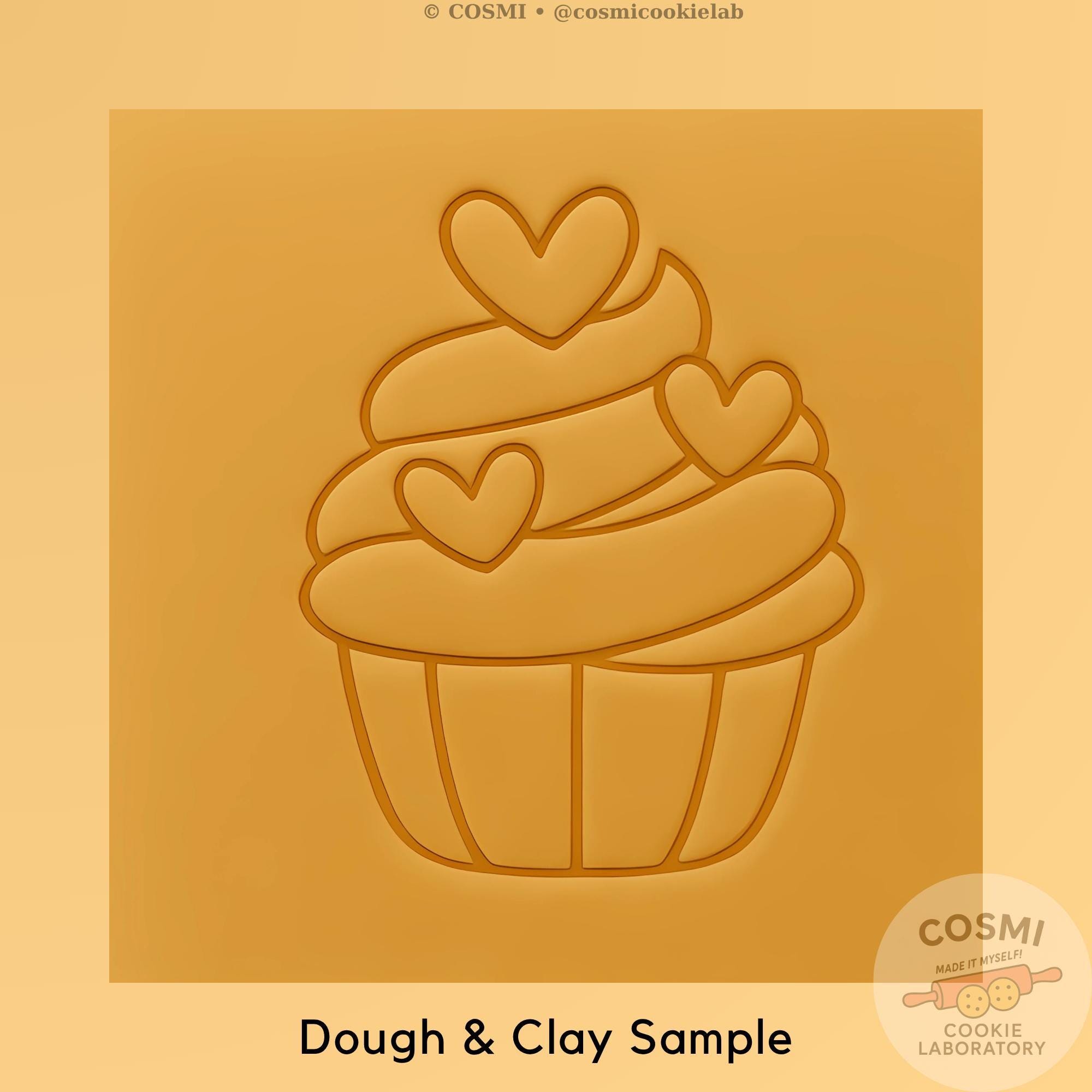 Cupcake Cookie Cutter - Heart Cupcake Cookies - Sweet Swirl Embosser Stamp
