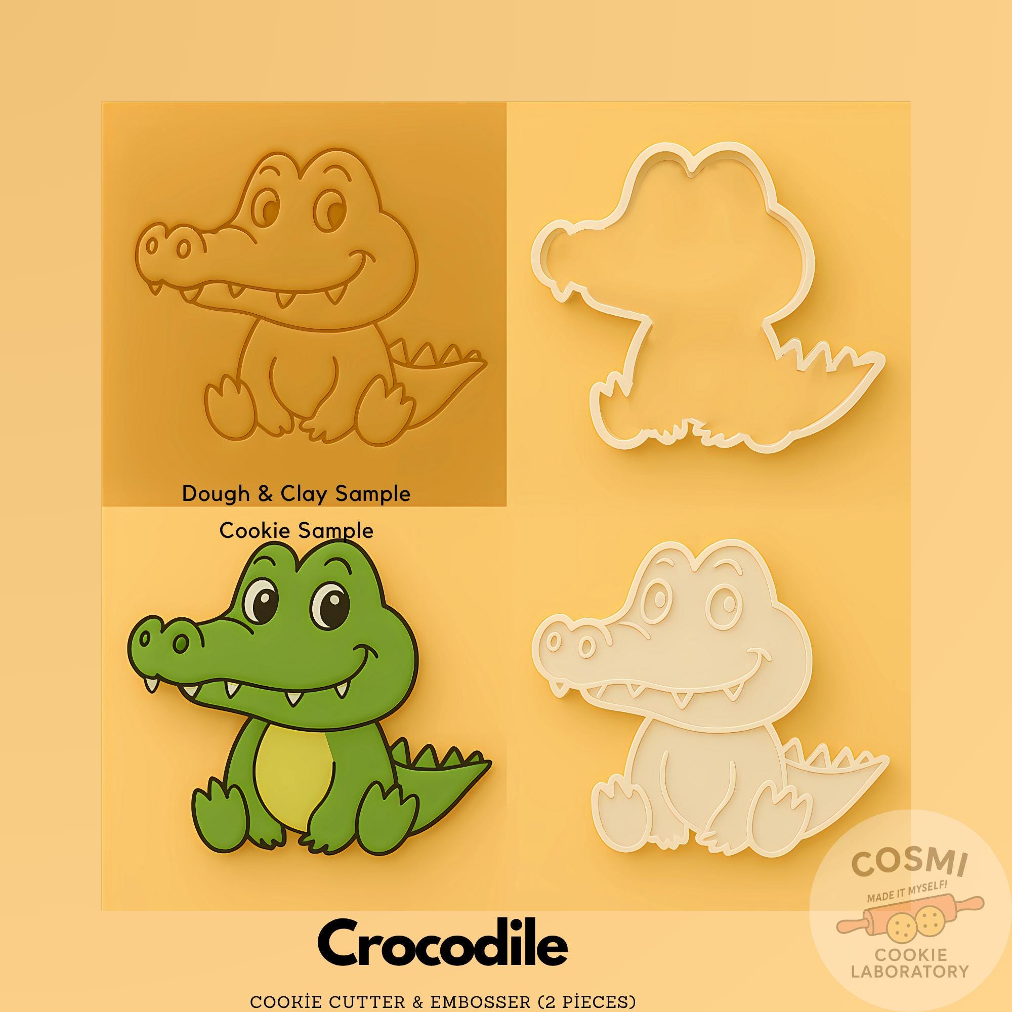 Crocodile Cookie Cutter - Jungle Safari Cookies - Crocodile Embosser Stamp