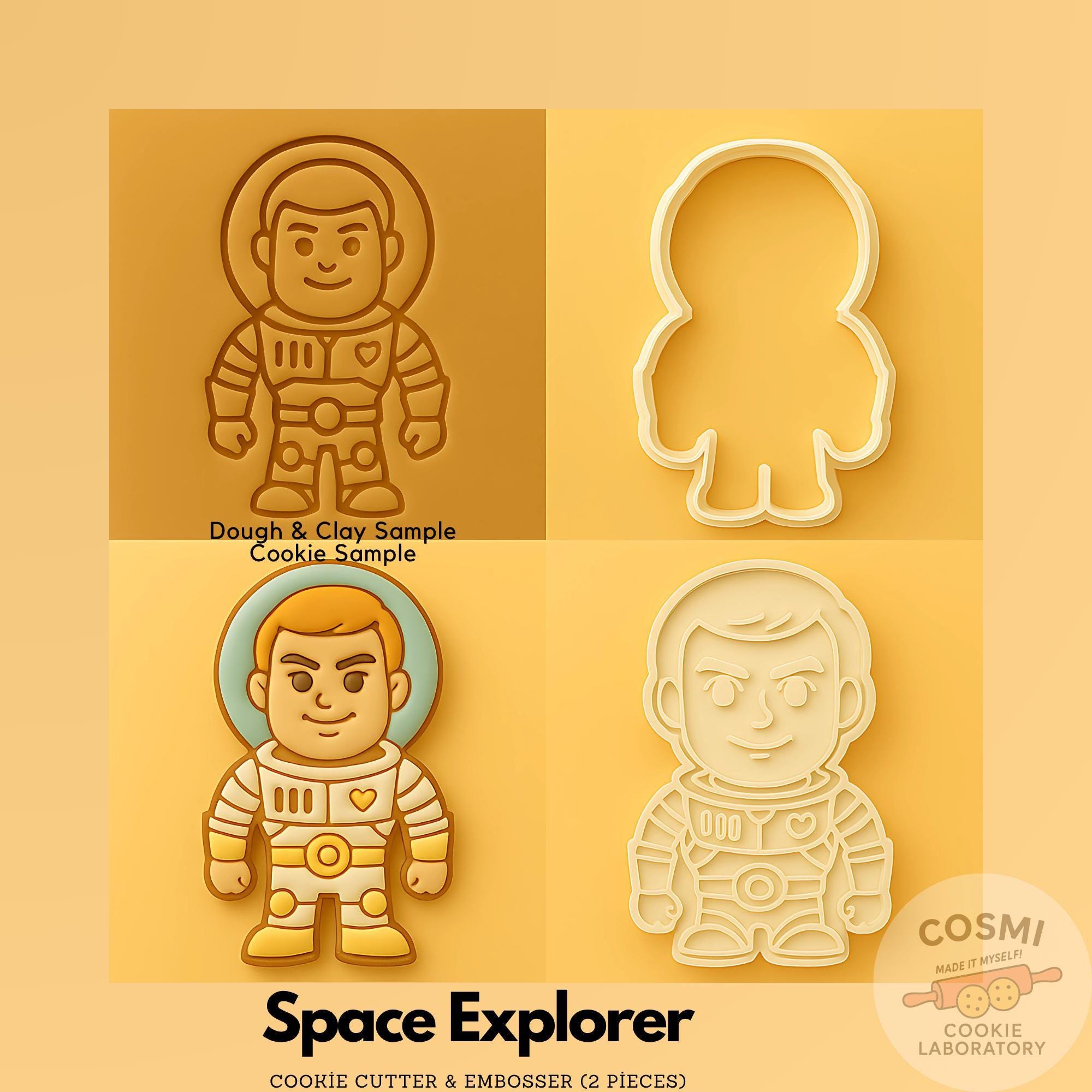 ✂️ Cutter creates a crisp astronaut silhouette; embosser adds helmet, suit lines, and control-panel details for a professional finish.