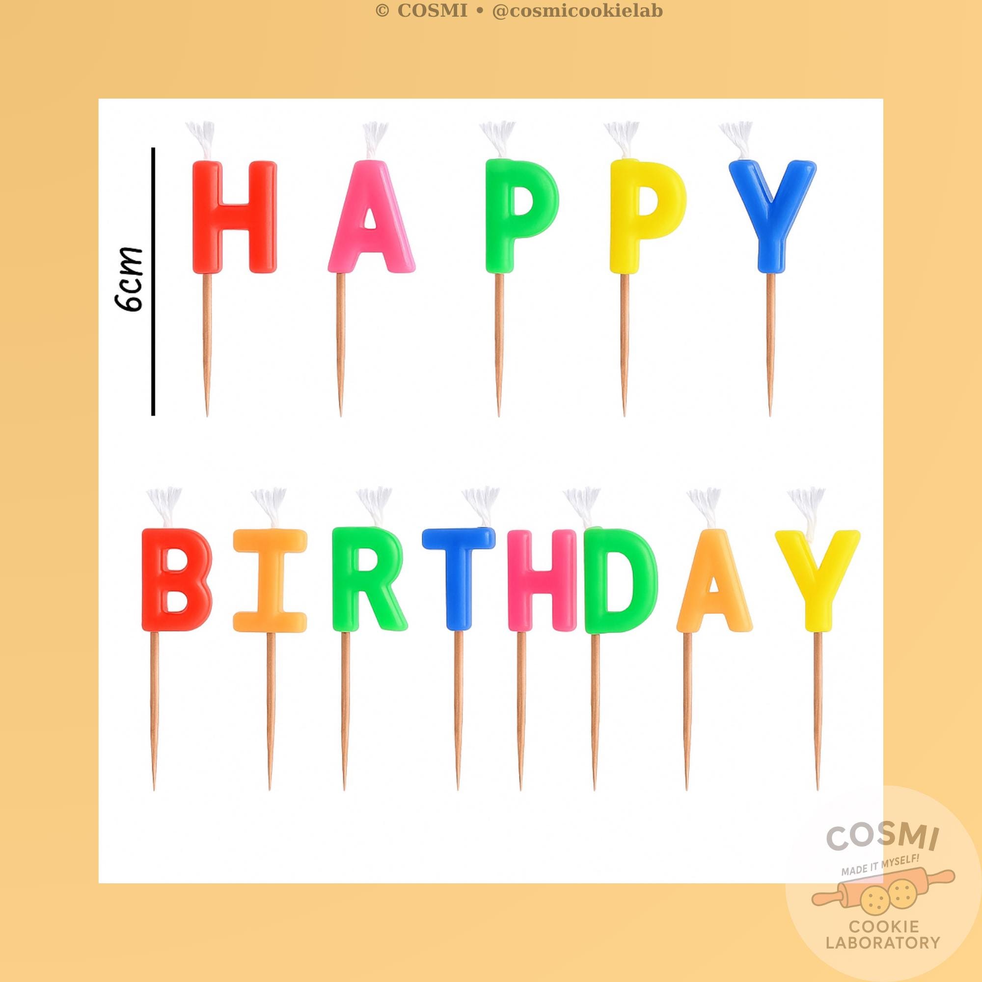 Celebrate birthdays in style with these vibrant HAPPY BIRTHDAY letter candles! Each candle is shaped like a colorful letter and comes with a wooden pick for easy placement on cakes or cupcakes.