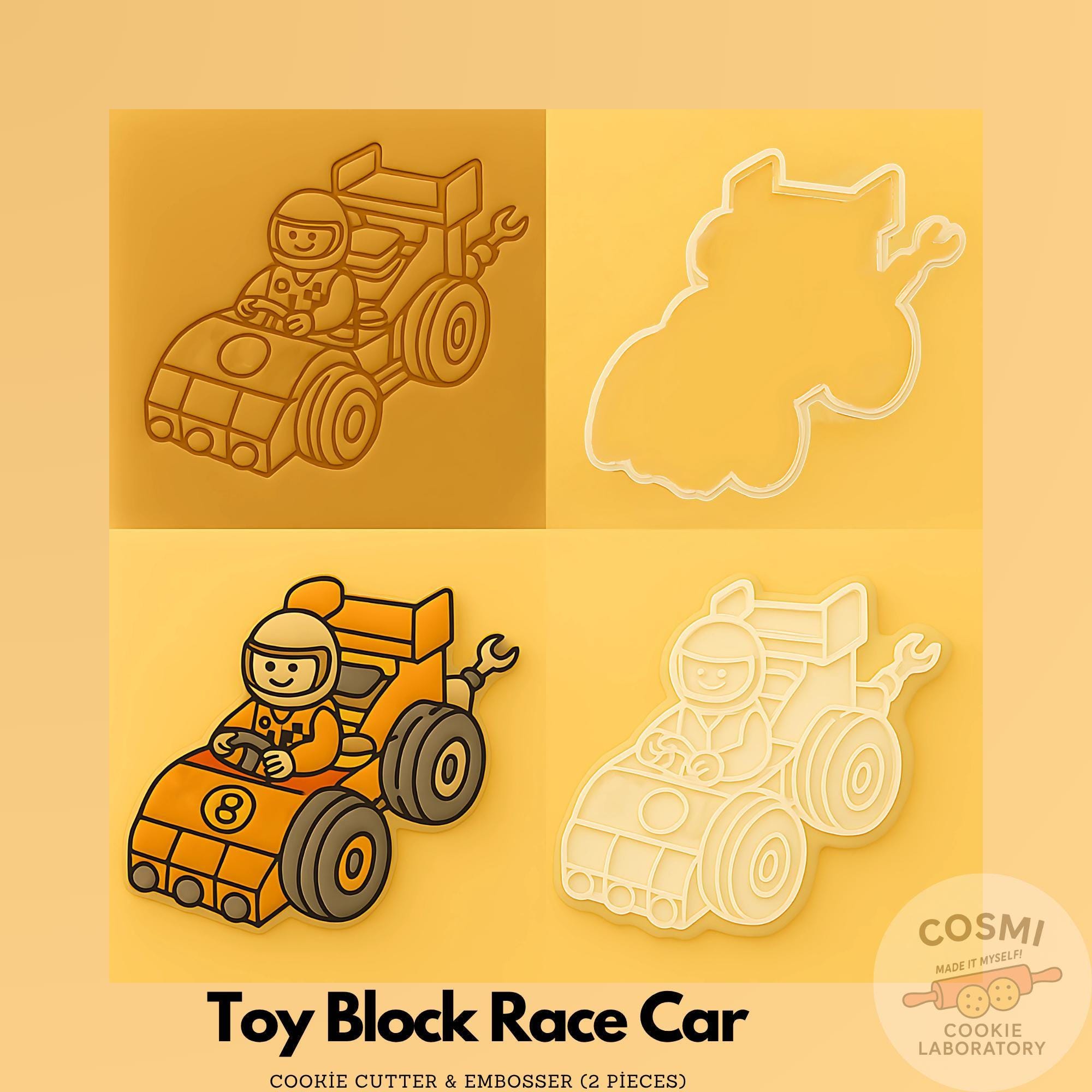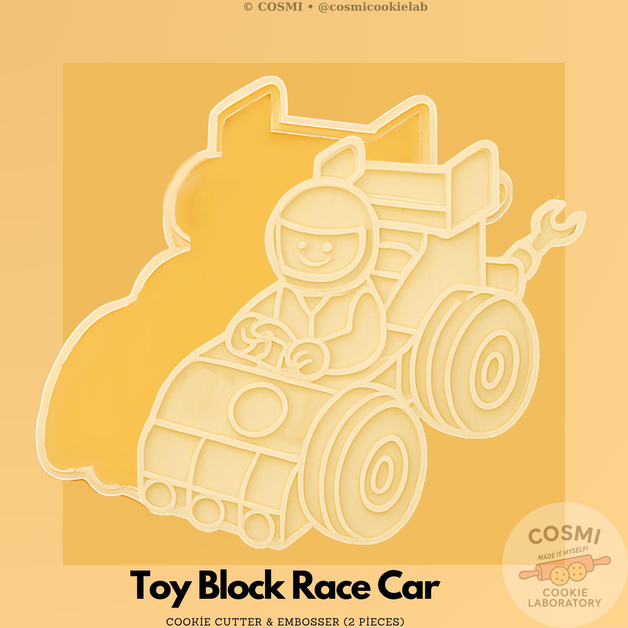 Toy Block Race Car Cookie Cutter - Speed Racer Party Cookies - Mechanic Embosser Stamp
