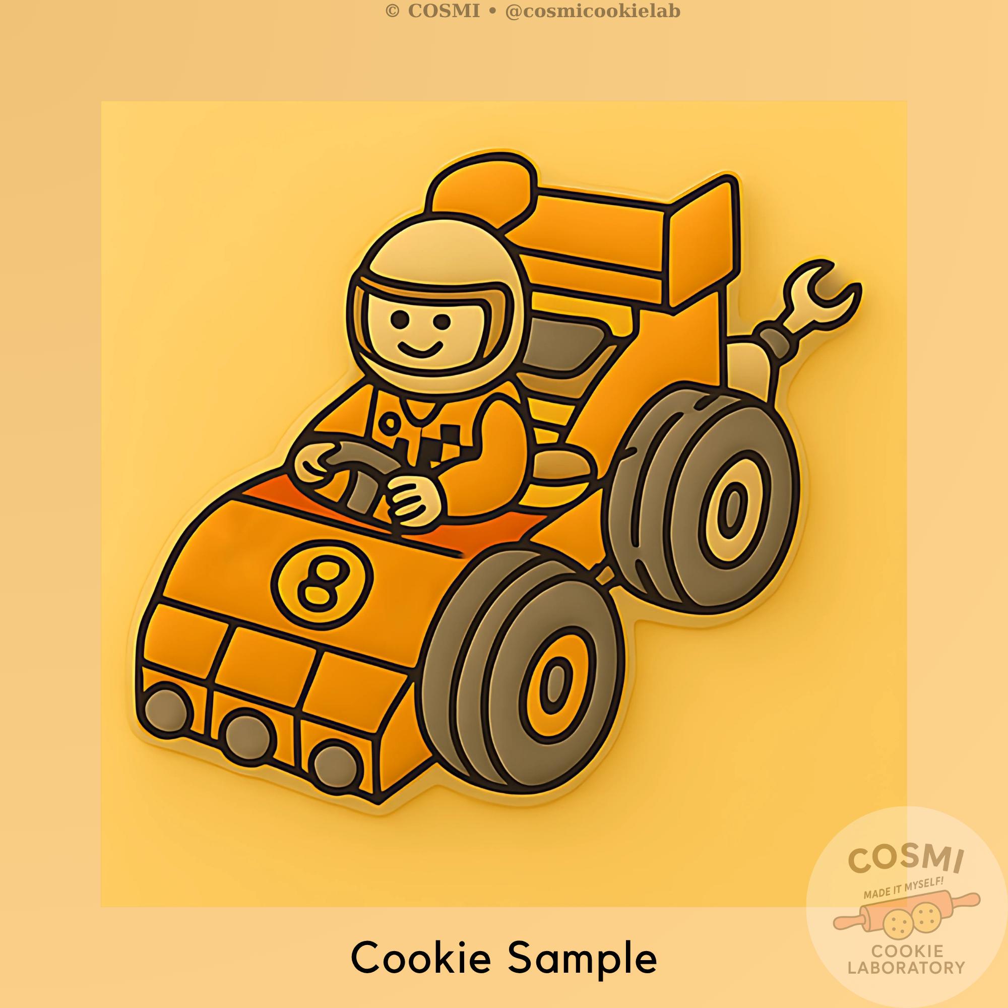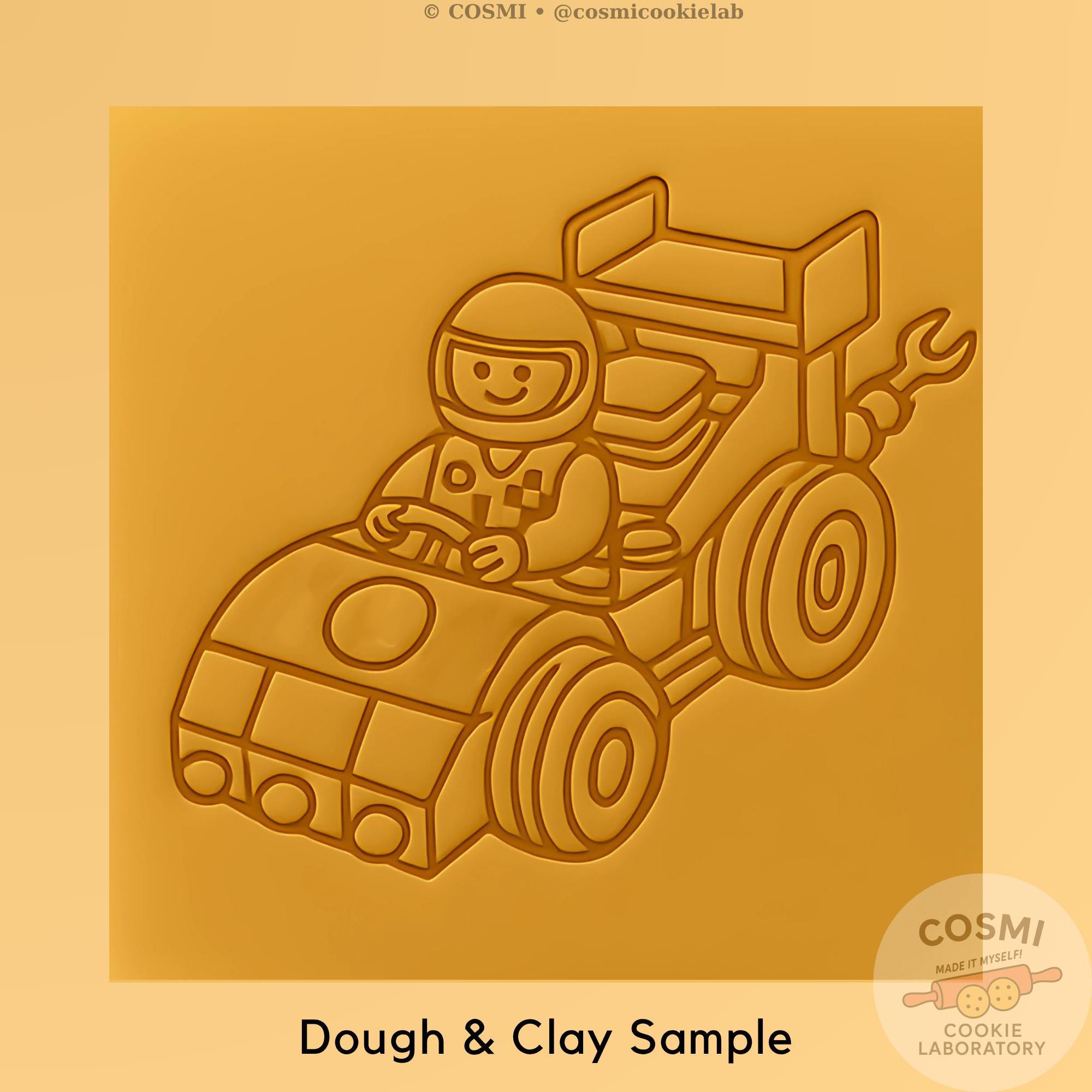 ✂️ Cutter delivers a clean car-and-driver outline; embosser adds wheel, helmet, and wrench details for a pro finish.