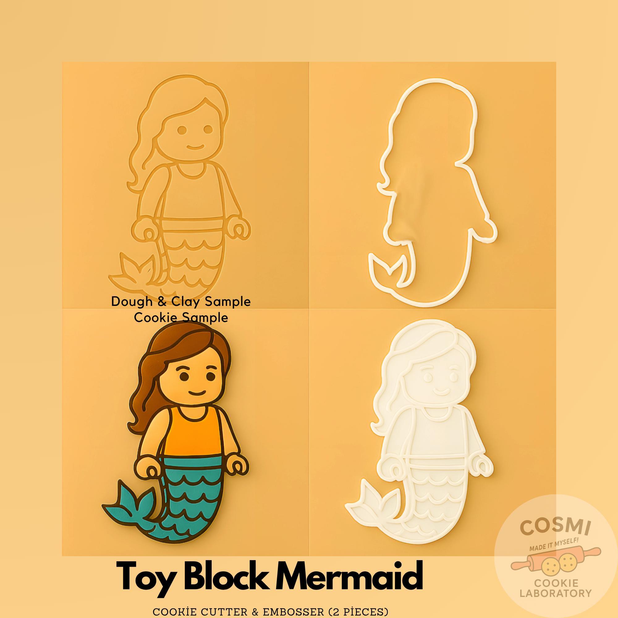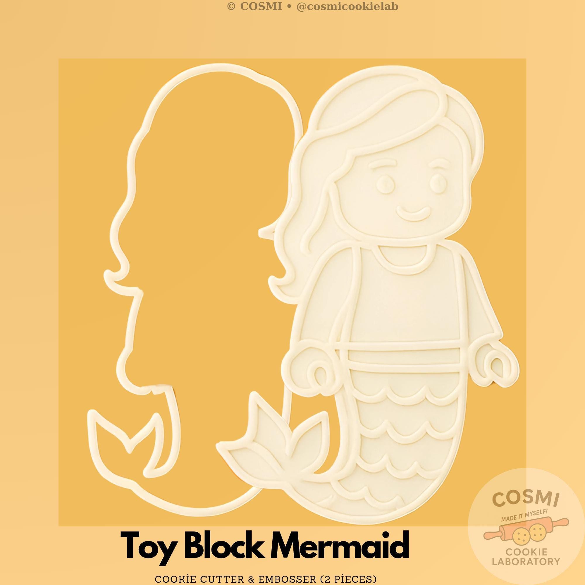 Toy Block Mermaid Cookie Cutter - Undersea Party Cookies - Mermaid Embosser Stamp