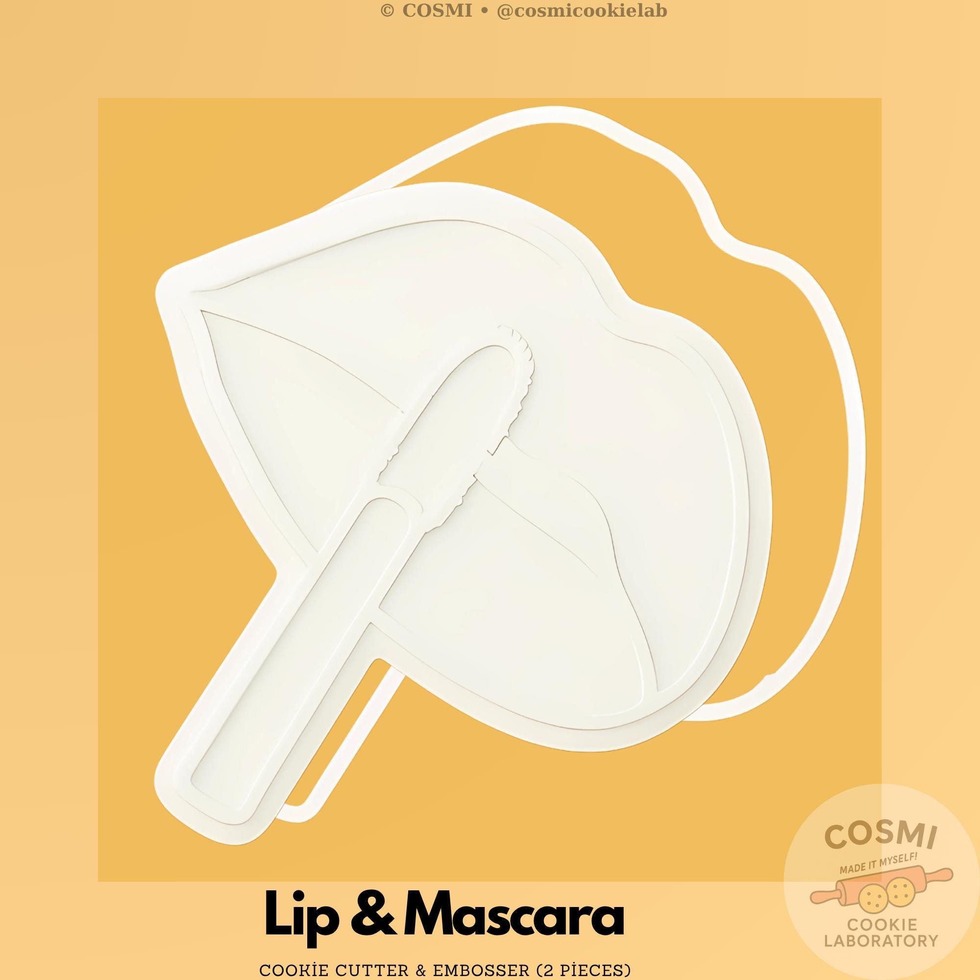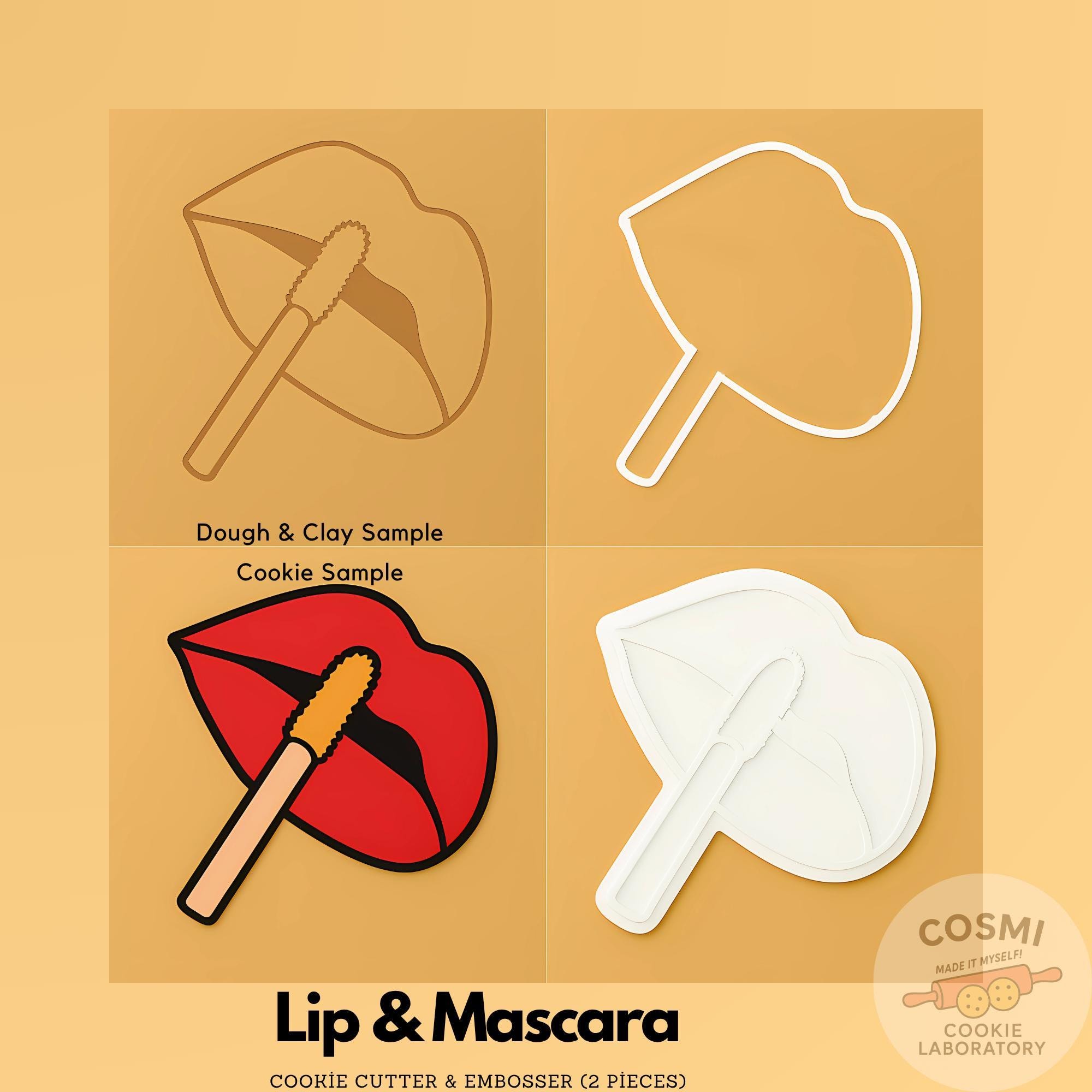 Lipstick Kiss Cookie Cutter – Lip and Mascara Embosser – Makeup Themed Cookie Stamp