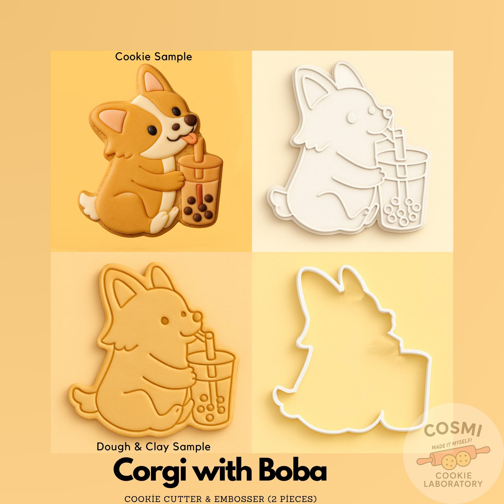 Bake adorable themed cookies with this Corgi Boba Tea Cookie Cutter & Embosser, featuring a playful corgi hugging a cup of bubble tea. Ideal for dog lovers, boba tea fans, birthday sets, kawaii collections, and gift boxes.