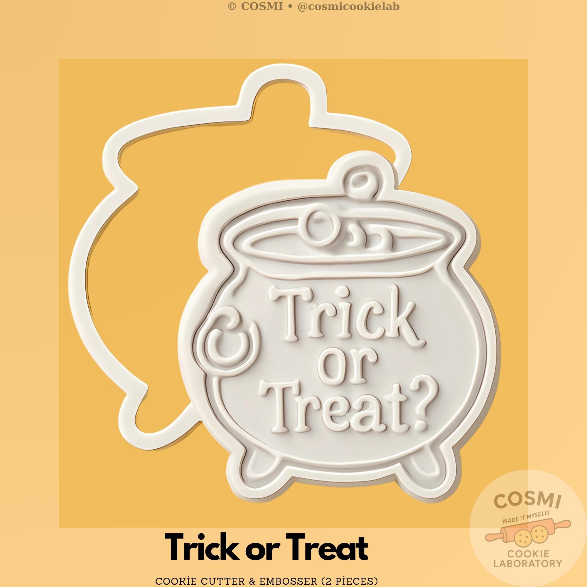 Brew up something sweet and spooky with our Trick or Treat Cauldron Cookie Cutter & Embosser! 🧙♀️🎃 This two-piece set features a bubbling cauldron with the classic "Trick or Treat?" phrase—perfect for Halloween bakes, party favors, and themed gift boxes.