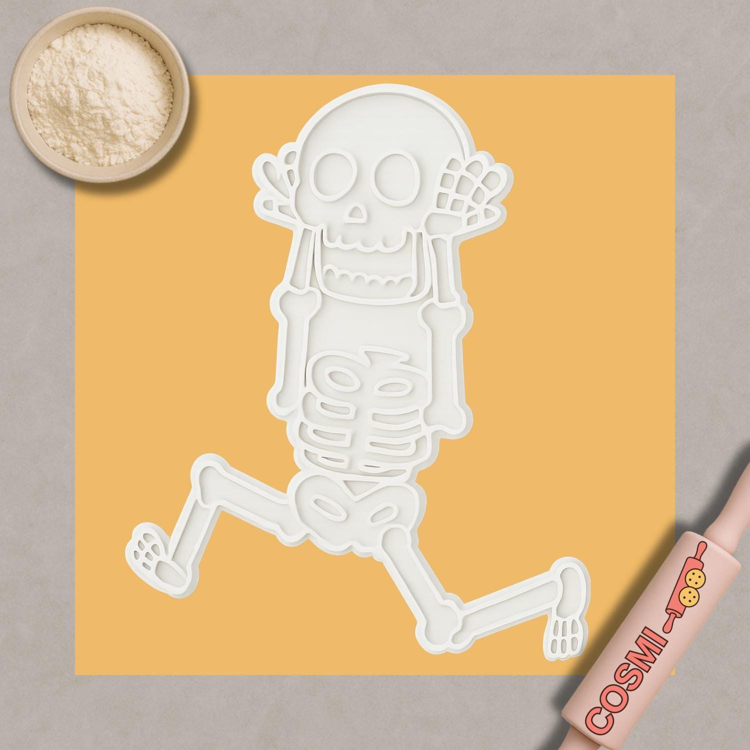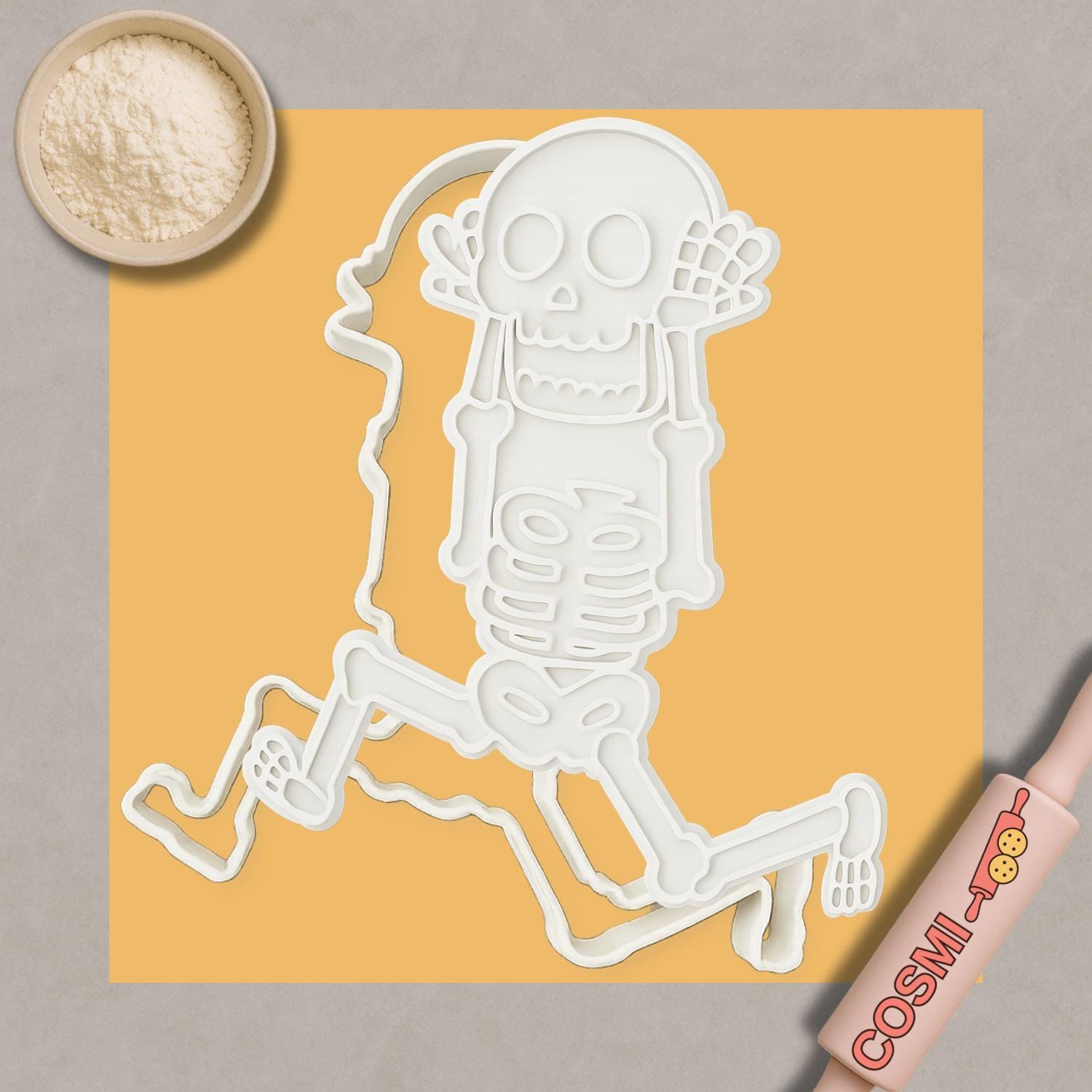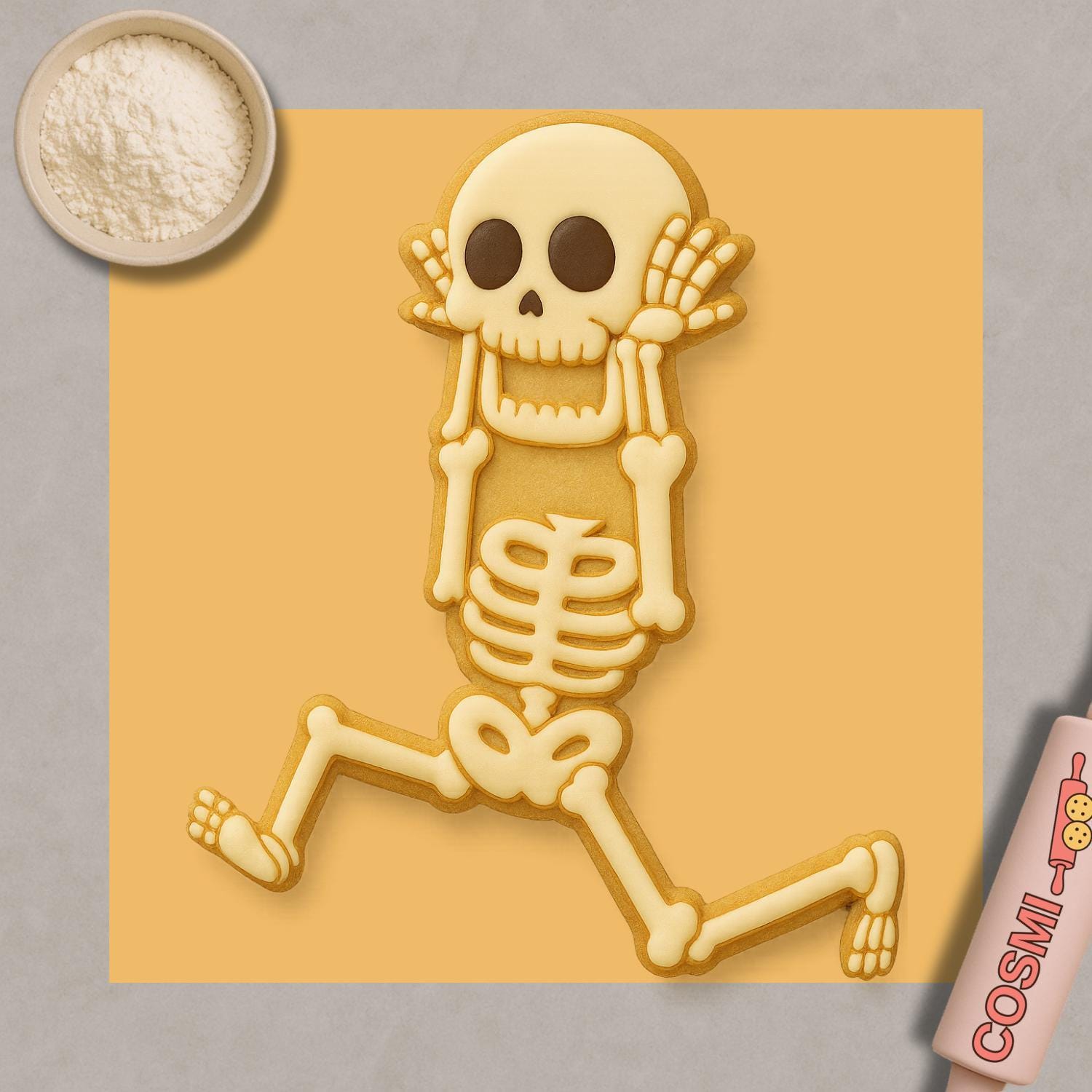 Meet our Running Skeleton cookie cutter and fondant embosser, perfect for creating fun, detailed cookies, fondant toppers or clay crafts for your spooky celebrations.