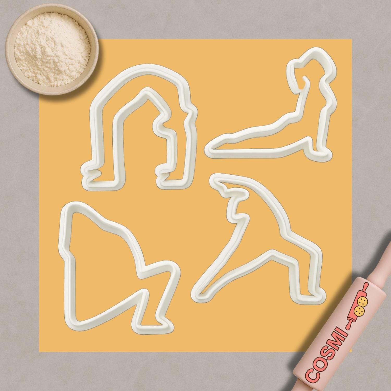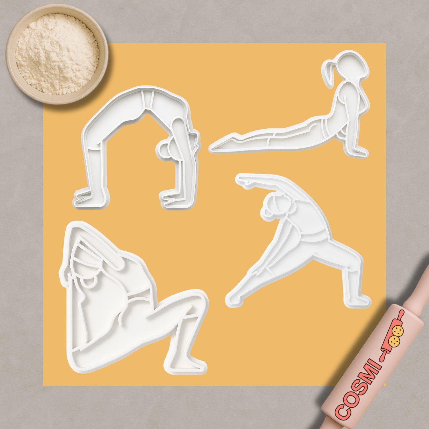 Featuring four graceful yoga silhouettes, this versatile design is perfect for themed cookies, fondant toppers, or clay creations. Ideal for wellness events, yoga studios, or mindful gift sets.