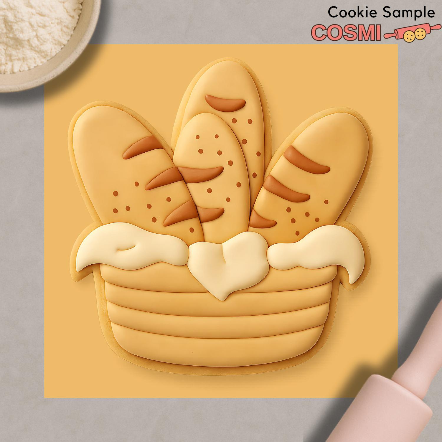 Bring a touch of artisan bakery charm to your creations with our Bread Basket cookie cutter and fondant embosser. Featuring a basket filled with rustic bread loaves, this delightful design is perfect for baking projects, fondant toppers, or clay crafts. Ideal for bakery-themed events, farmers’ market displays, or homemade gift boxes.