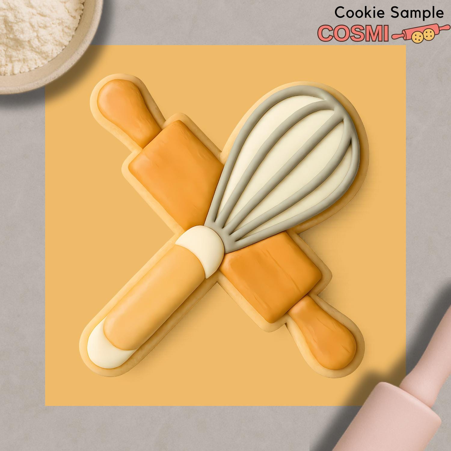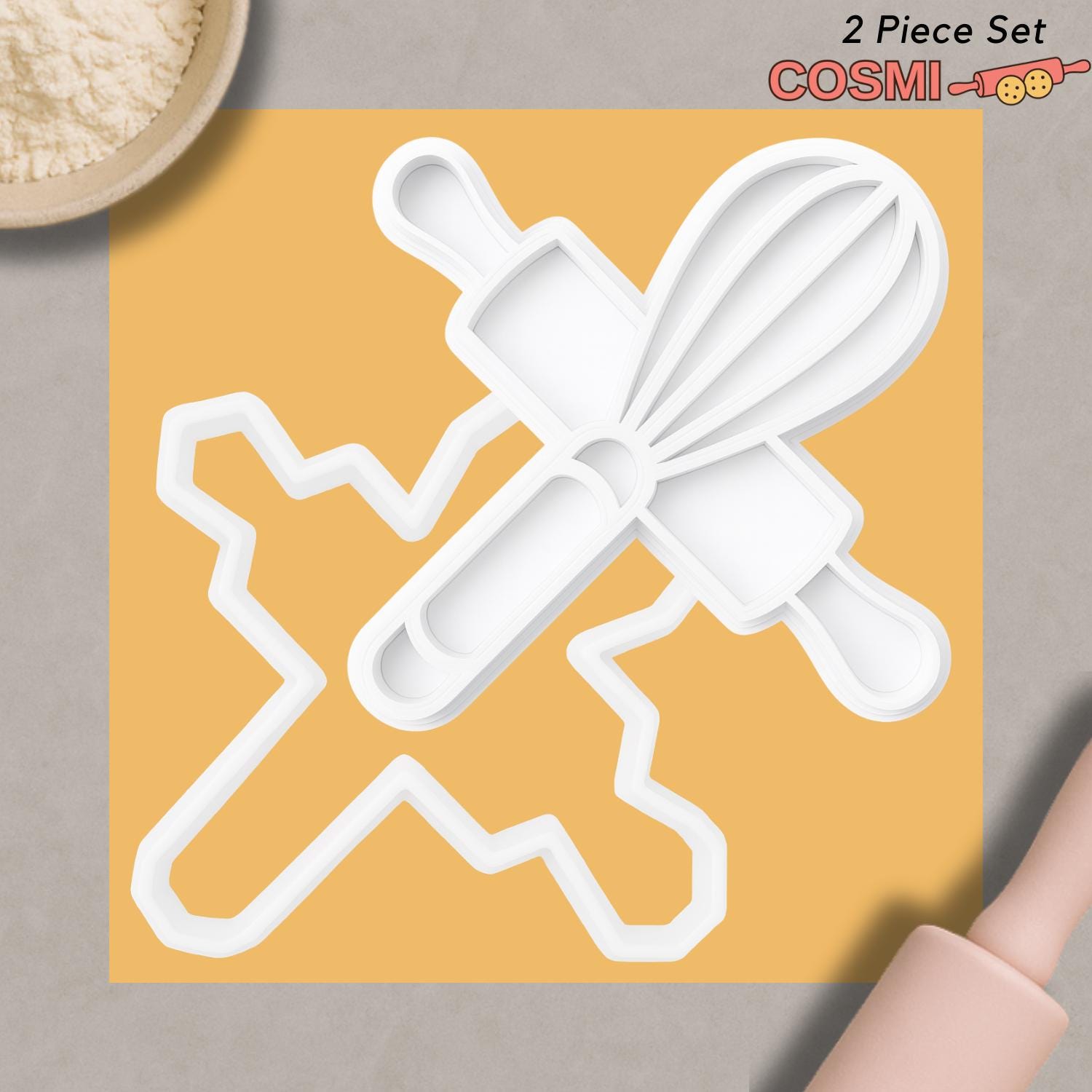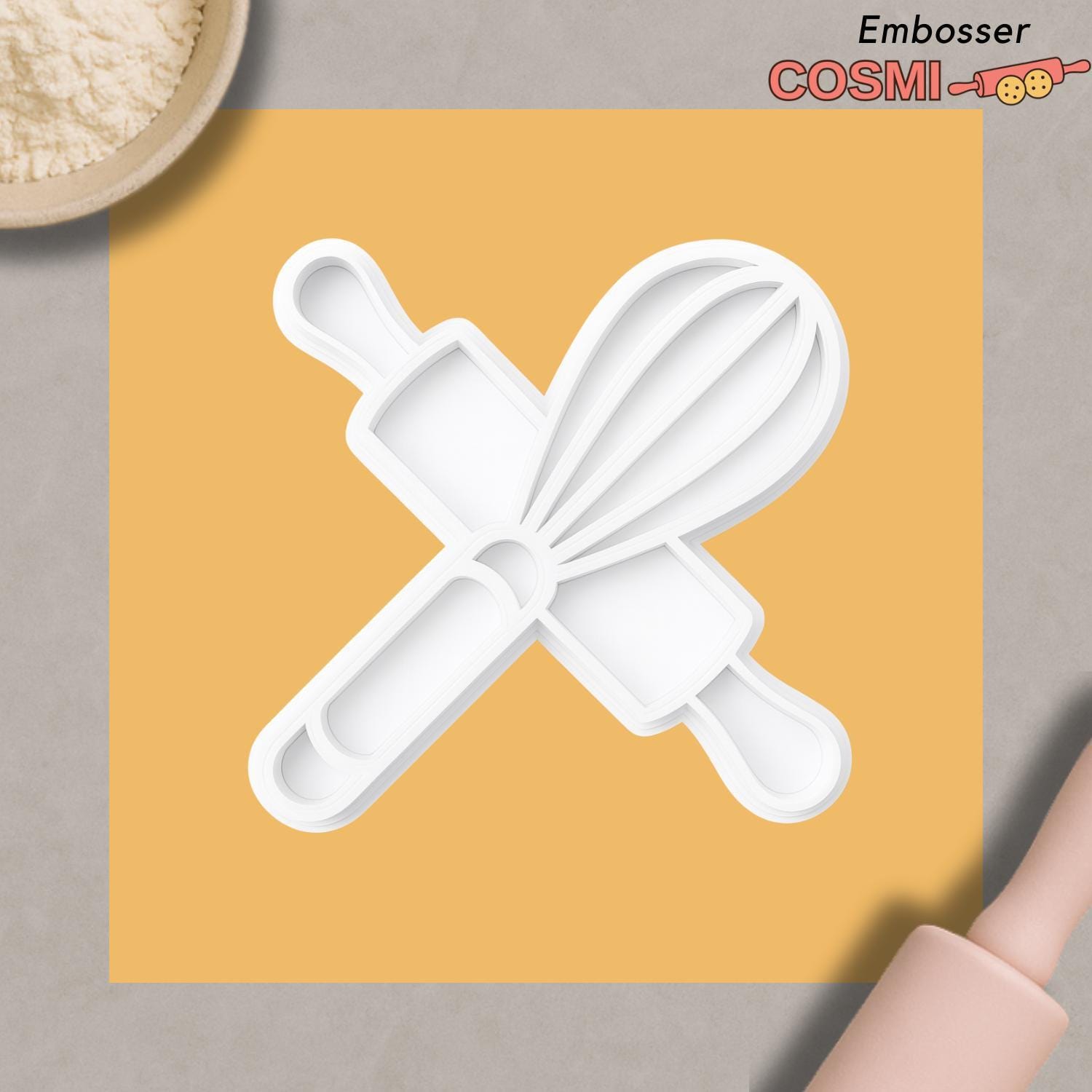 Celebrate your love for baking with our Rolling Pin and Whisk cookie cutter and fondant embosser. Featuring a crossed rolling pin and whisk design, this cutter is perfect for bakers, pastry lovers, and kitchen-themed projects. Great for cookies, fondant toppers, and craft clay decorations, this tool adds a fun and professional touch to your creations. Ideal for bake sales, cooking class gifts, or bakery-themed parties.