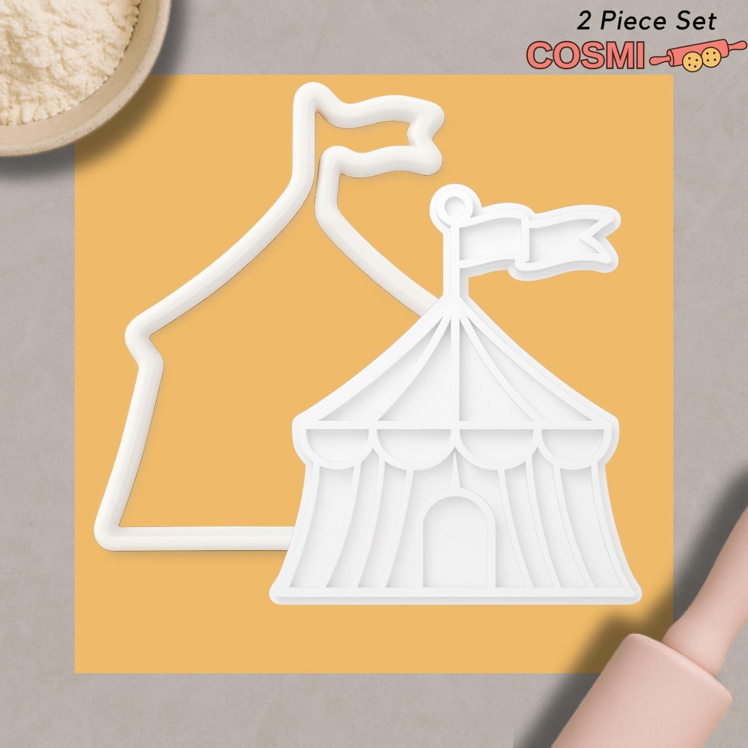 Circus Tent Cookie Cutter & Fondant Embosser – Carnival and Party Baking Tool