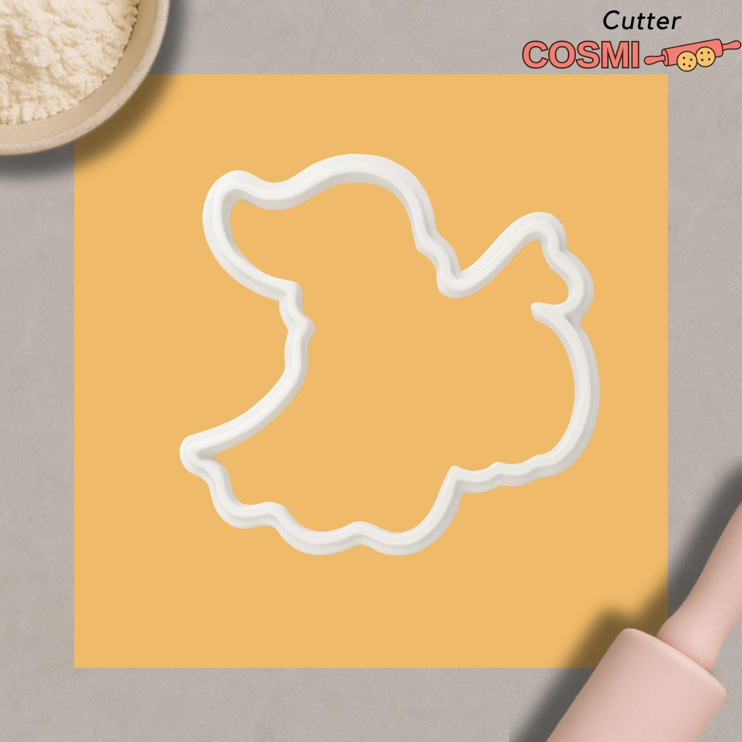 Add some spooky charm to your baking with our Halloween Ghost cookie cutter and fondant embosser. Featuring an adorable ghost holding a pumpkin, this design is perfect for Halloween parties, trick-or-treat events, and festive autumn gatherings. Great for cookies, fondant decorations, or even clay crafts with a seasonal twist.