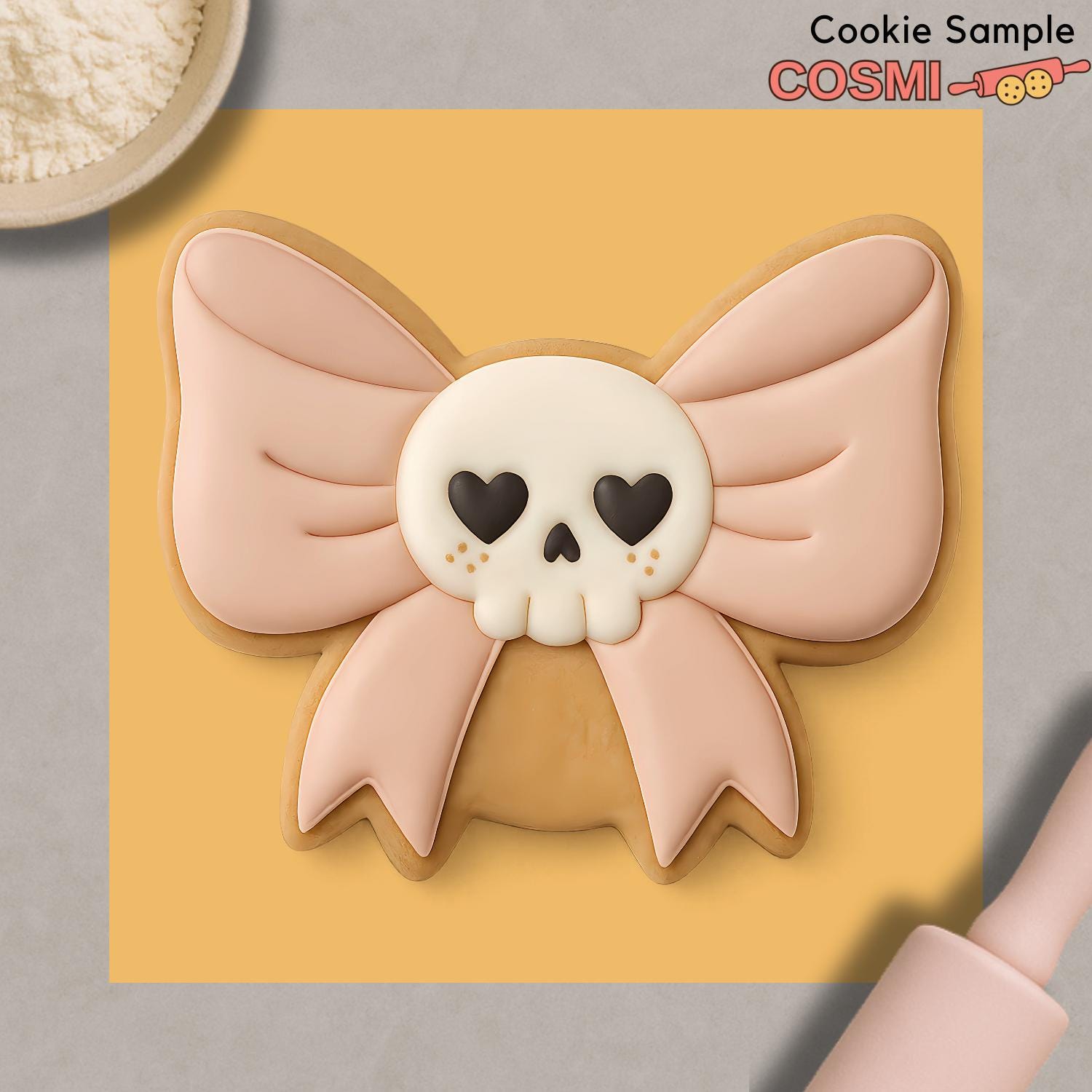 Add a spooky-sweet twist to your baking with our Skull Bow cookie cutter and fondant embosser. This charming design features a skull with heart-shaped eyes nestled in a big bow, blending gothic style with adorable details. Perfect for Halloween parties, gothic-themed events, or simply for bakers who love mixing cute and spooky. Ideal for cookies, fondant decorations, or craft projects.