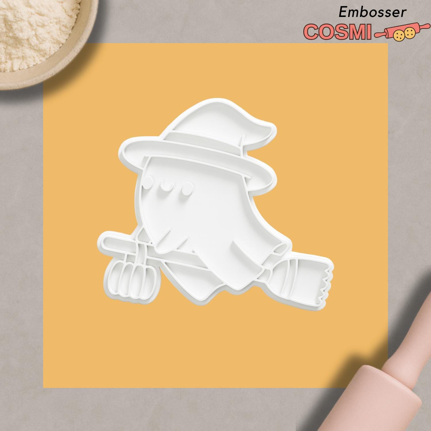 Witch Ghost Cookie Cutter & Fondant Embosser: Flying Halloween Treat Design