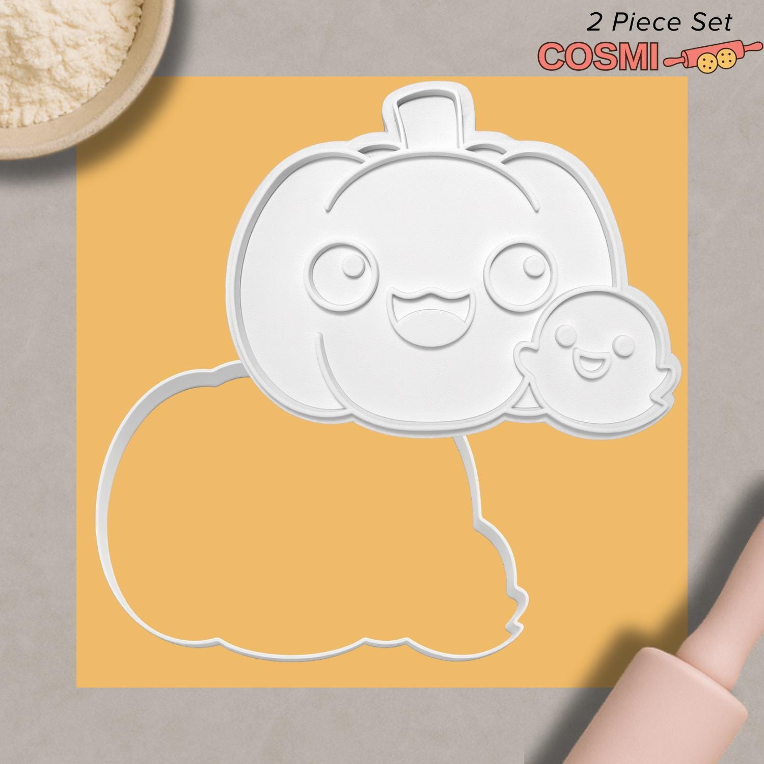 Make your Halloween baking extra fun with our Ghost with Pumpkin cookie cutter and fondant embosser. Featuring an adorable ghost hugging a smiling pumpkin, this design is perfect for Halloween parties, kids’ trick-or-treat events, and autumn-themed baking. Great for cookies, fondant creations, and clay crafts, this cheerful character adds a playful twist to your spooky treats.