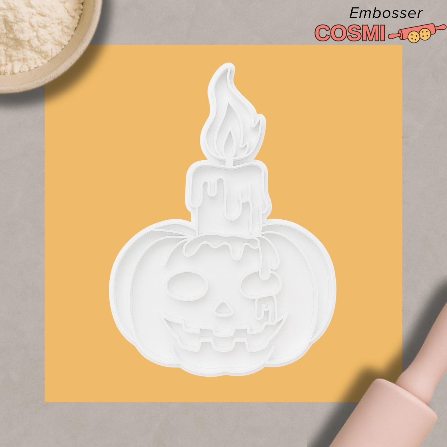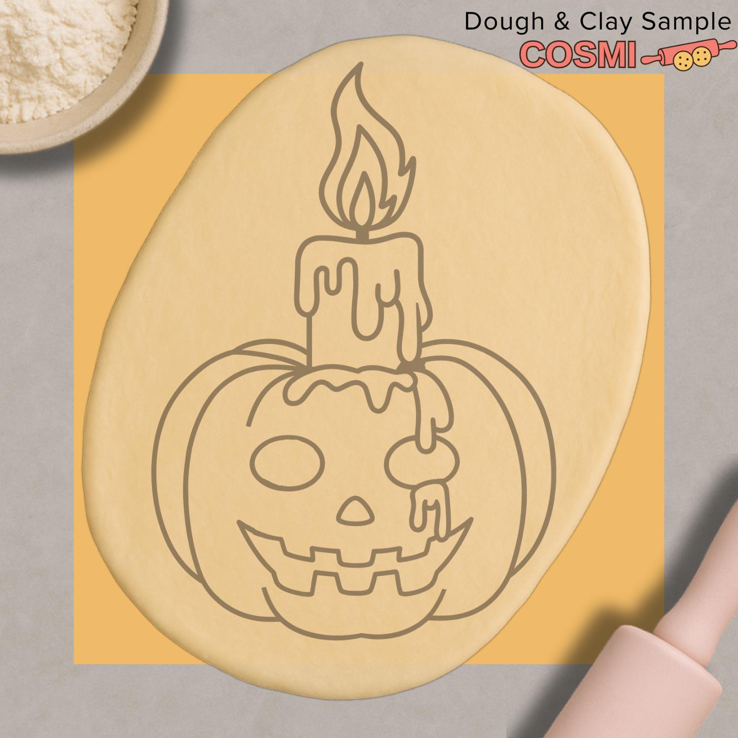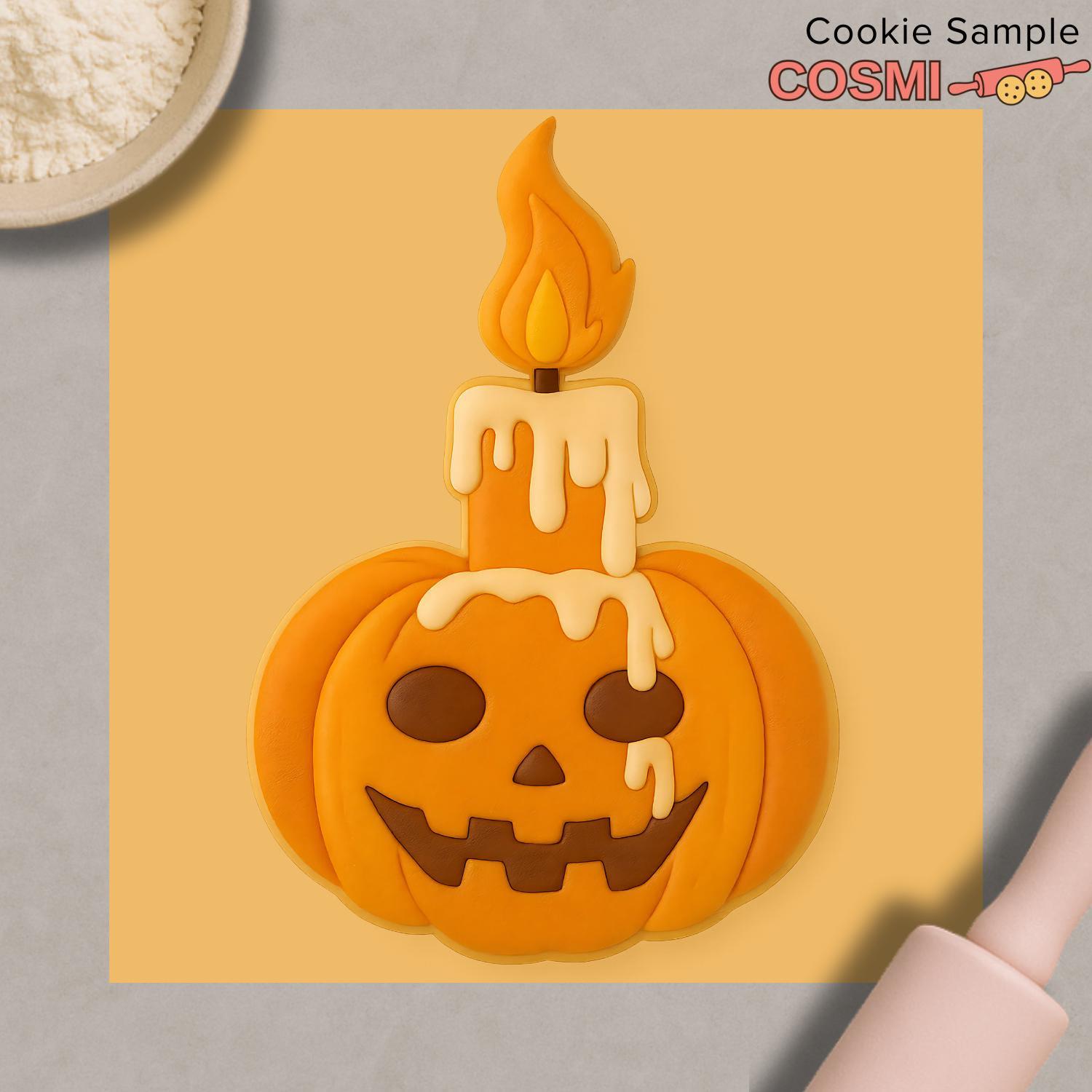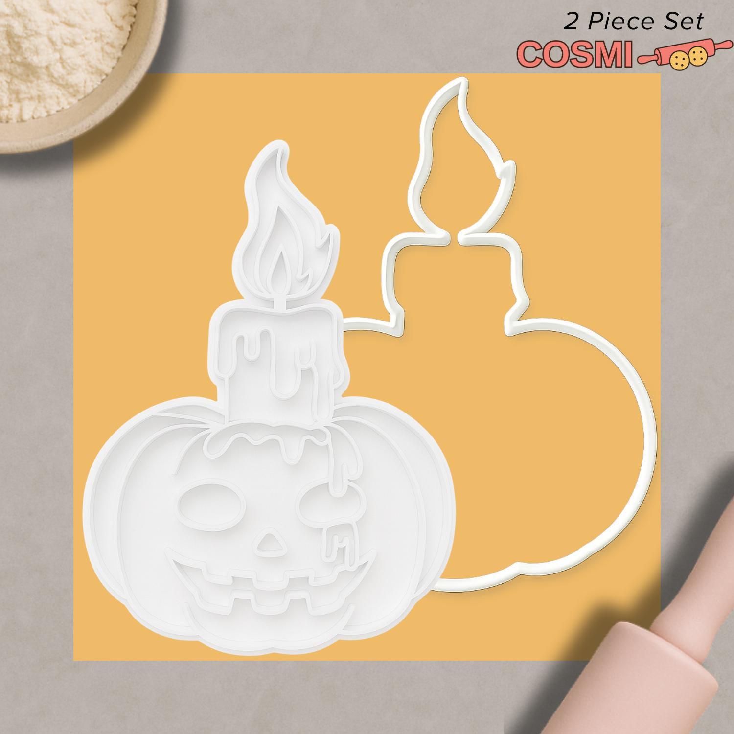 Pumpkin Candle Cookie Cutter with Fondant Embosser – Spooky Jack O’Lantern Halloween Baking Tool