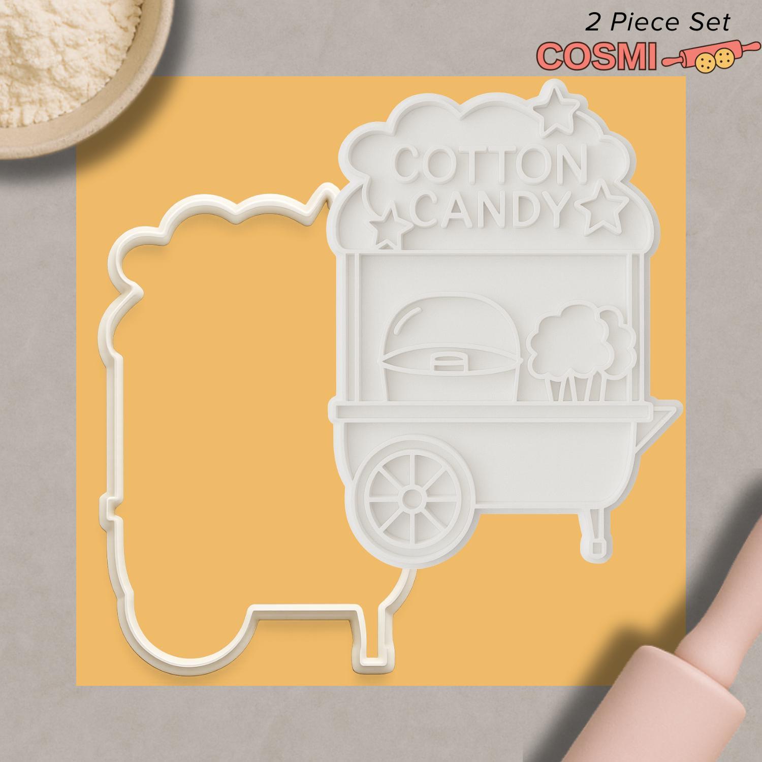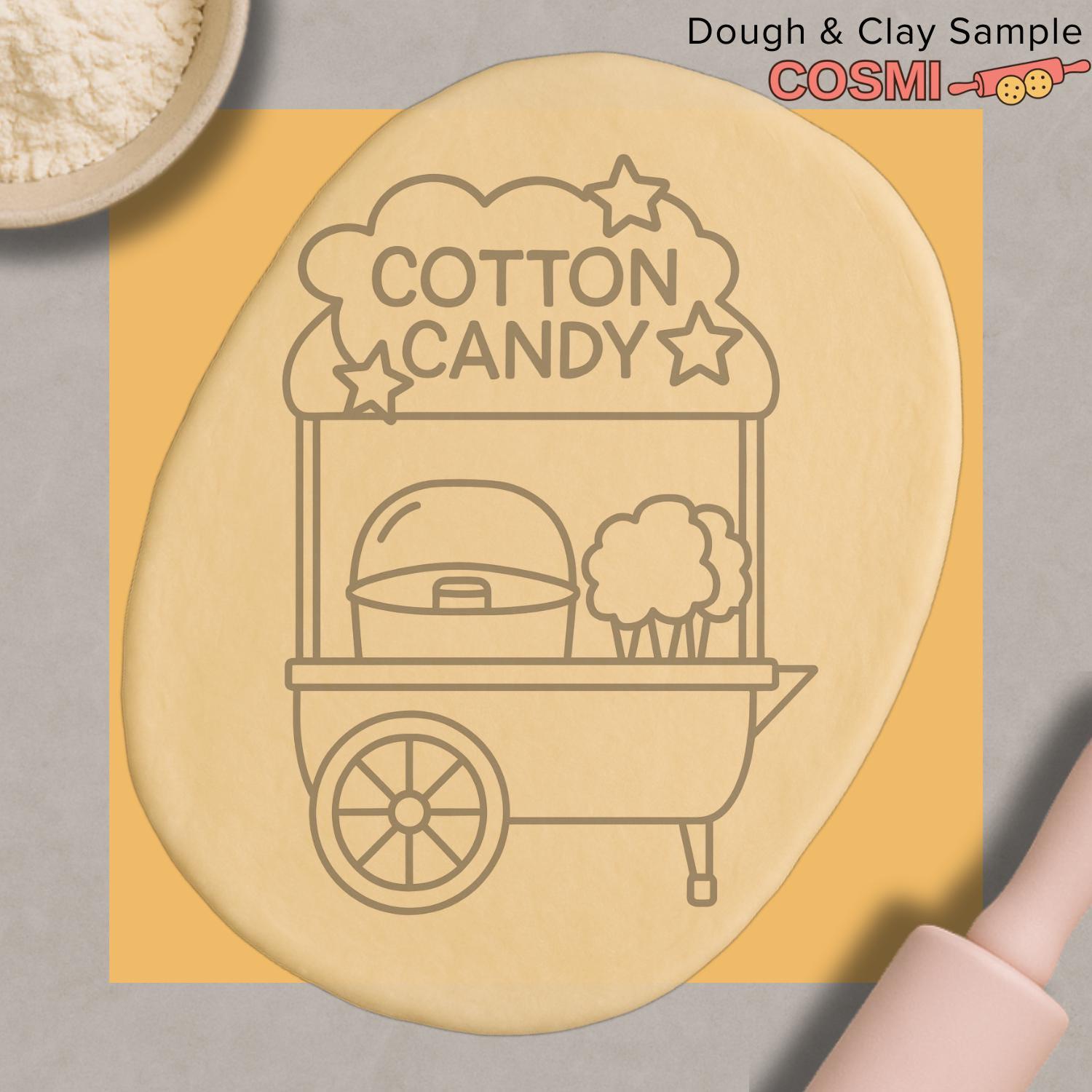 Bring carnival magic to your baking with this Cotton Candy Cart Cookie Cutter & Embosser, designed as a full candy stand complete with wheel, cotton candy sticks, machine bowl, and star decorations. Perfect for carnival-themed cookie sets, birthday parties, sweet shop boxes, festival collections, and candy-themed gift sets.