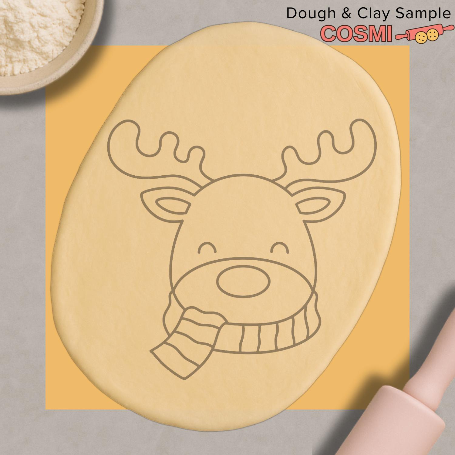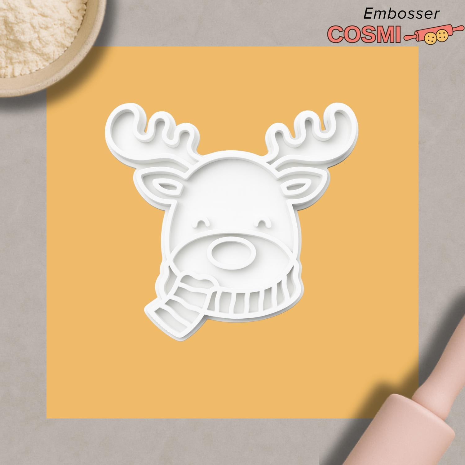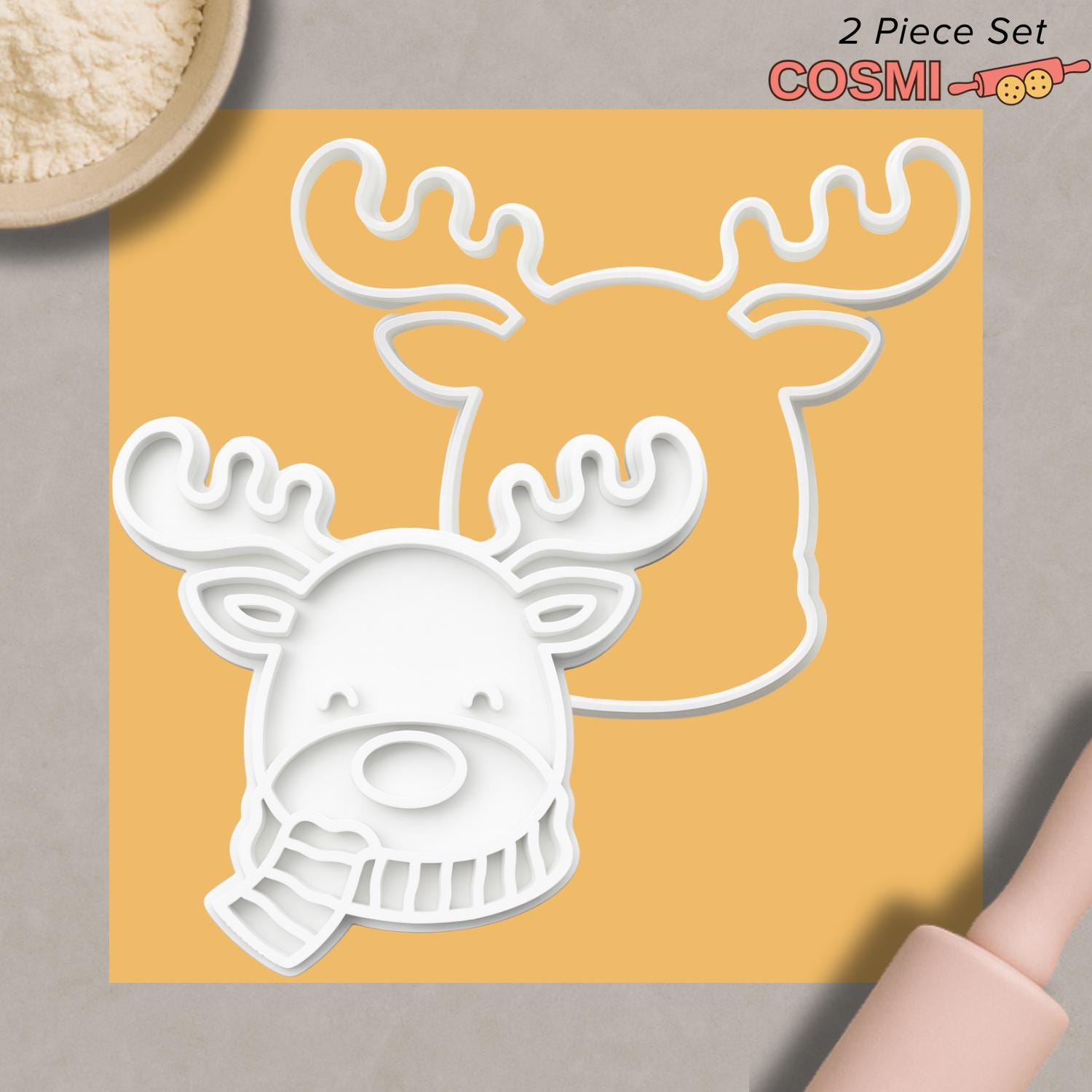 Reindeer Face Cookie Cutter with Fondant Embosser – Christmas Holiday Baking Tool