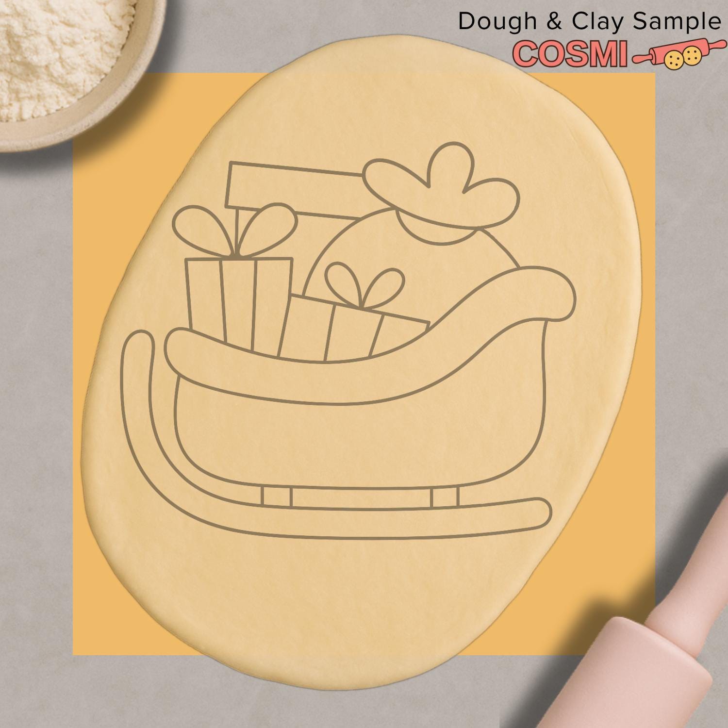 The cutter creates a clean sleigh outline, while the embosser adds detailed gift shapes, sack lines, and structural sleigh accents. Works perfectly with sugar cookie dough, fondant, and clay.