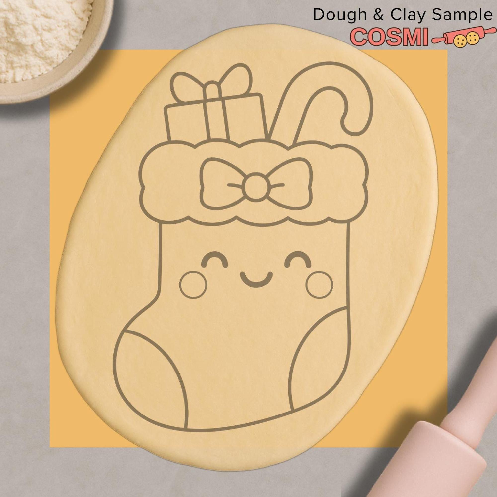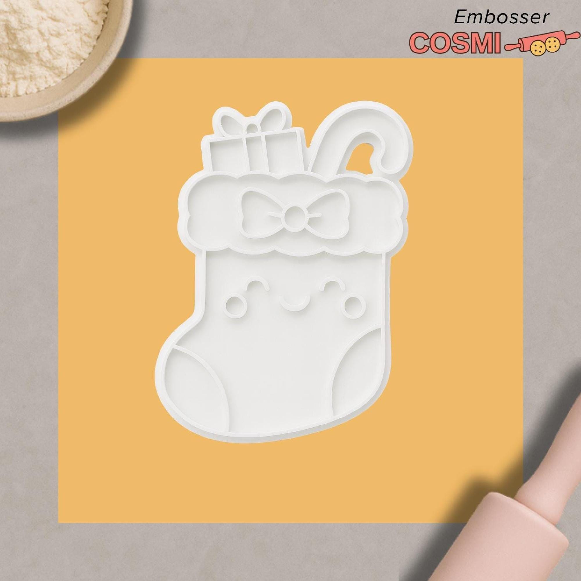 Design: Christmas stocking-shaped cookie cutter with matching stocking embosser for professional results