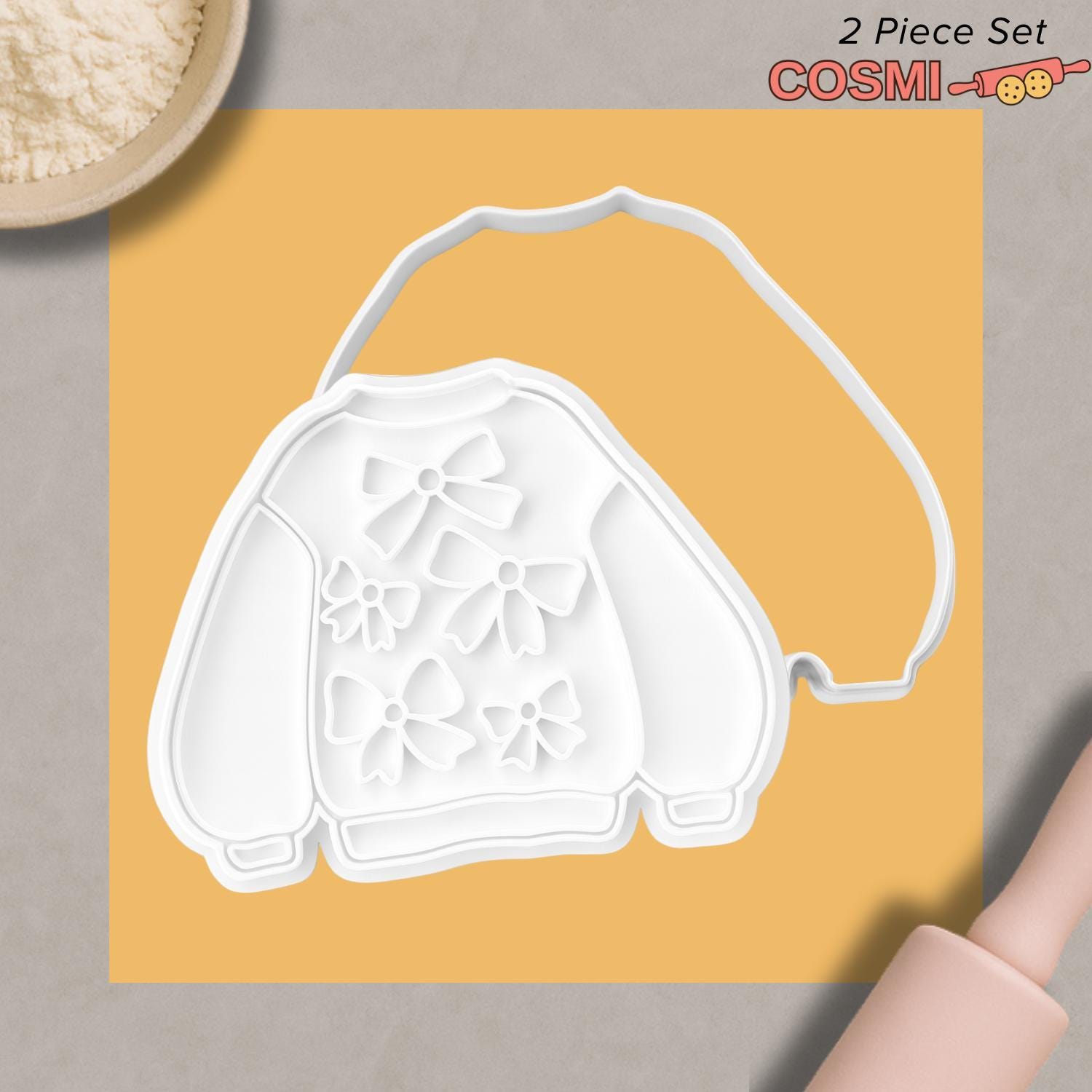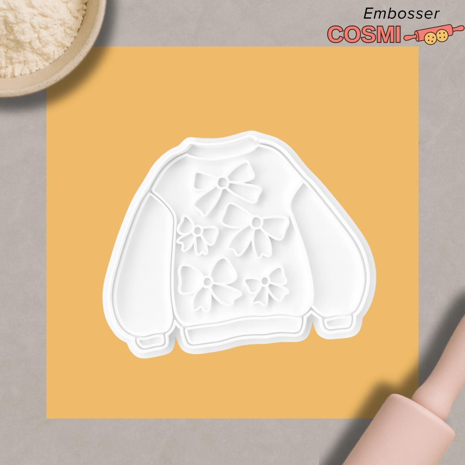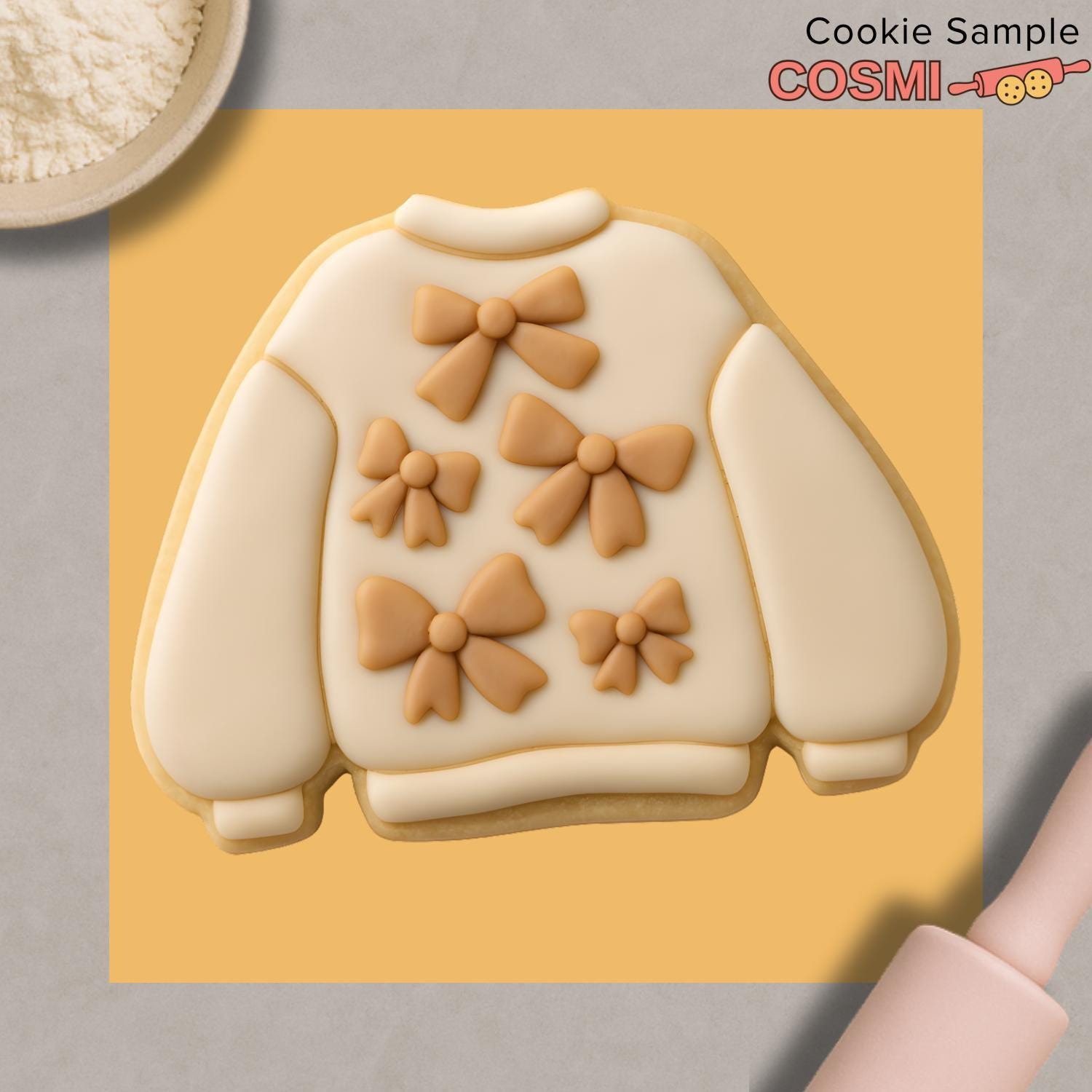 Create beautifully detailed cookies with this Sweater Cookie Cutter & Embosser, featuring a bow-patterned sweater design. Perfect for Christmas cookie sets, holiday parties, winter collections, and seasonal gift boxes.