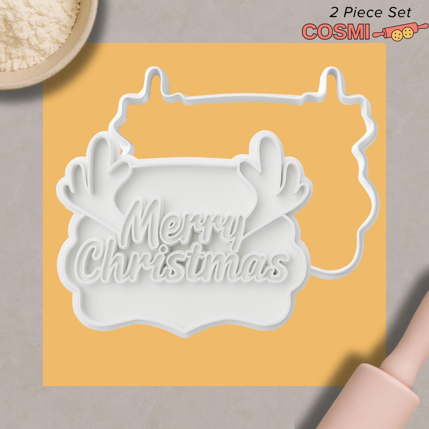 The cutter forms a clean plaque outline while the embosser adds detailed reindeer antlers and “Merry Christmas” lettering. Works beautifully with sugar cookie dough, fondant, and clay.