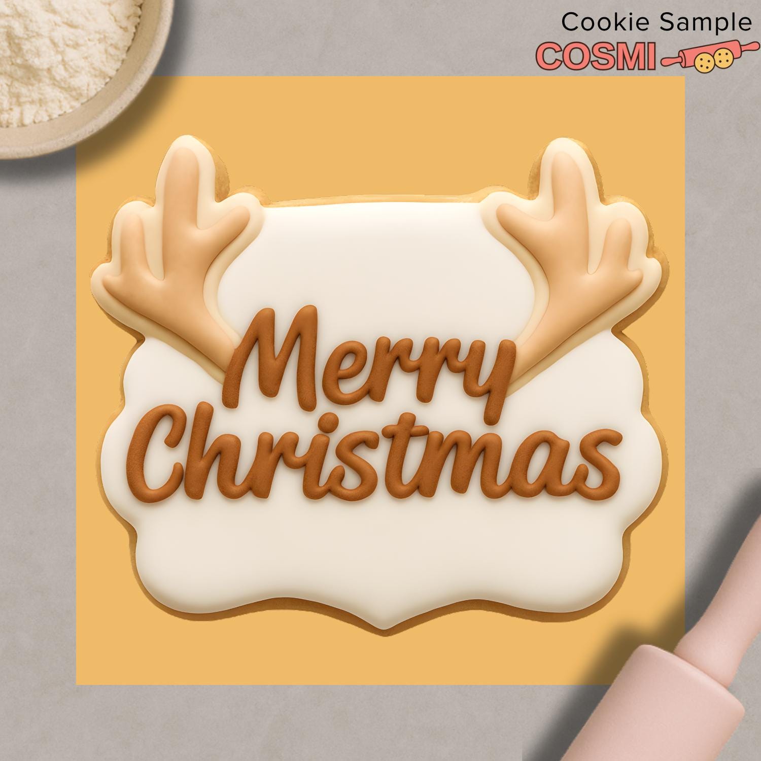 Create festive cookies with this Merry Christmas Cookie Cutter & Embosser, featuring reindeer antlers and a plaque-style shape. Perfect for Christmas cookie sets, holiday parties, winter market boxes, and seasonal gift collections.