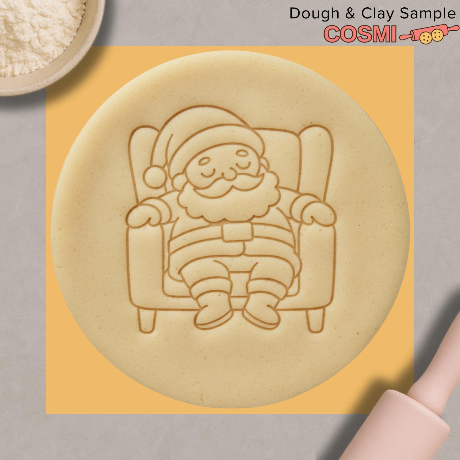 The cutter creates a clear outline of the armchair and Santa, while the inner stamp adds the details of his peaceful sleeping face and outfit. It is perfect for "Cookies for Santa" plates or a fun addition to a dessert table.