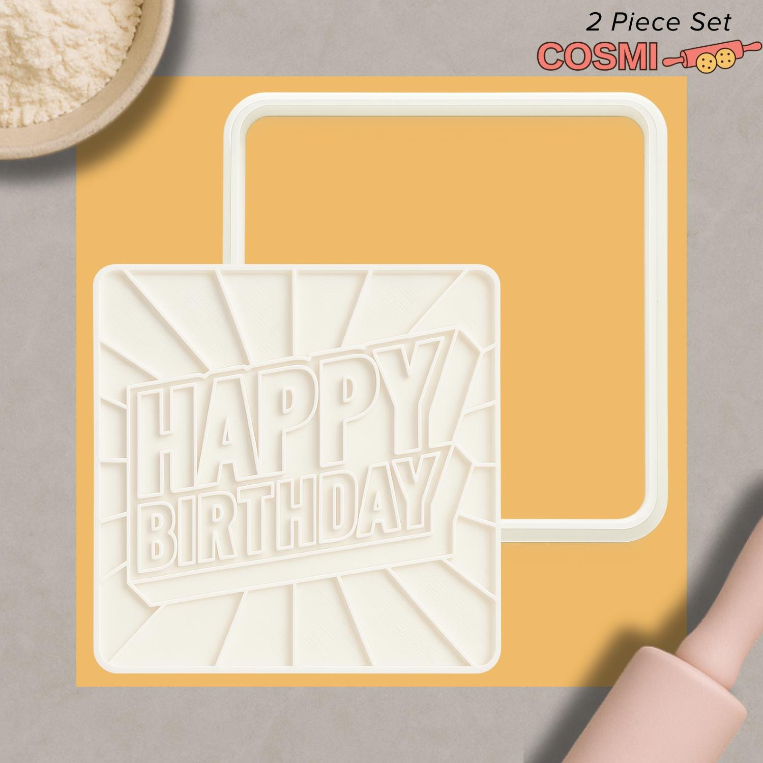 Happy Birthday Text Cookie Cutter & Stamp | Retro Lettering Embosser | Birthday Fondant Mold | Party Baking Tool | 3D Printed Biscuit Stamp