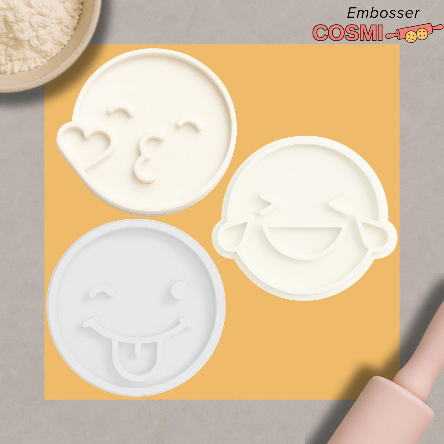 Emoji Face Cookie Cutter Set | Smiley Biscuit Embosser | Round Emoji Cookie Stamp | Fondant Decorating Tool | Party Baking | 3D Printed