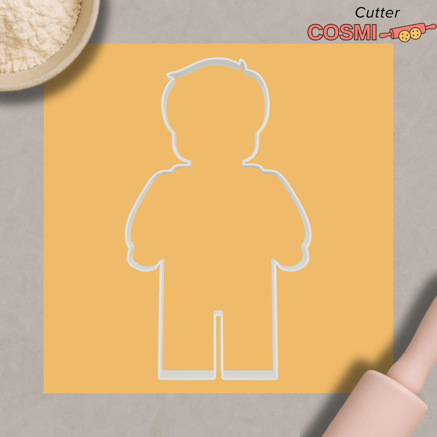 Create personalized cookies with this Custom Figure Cookie Cutter & Embosser, designed in a toy-style character shape with customizable text on the shirt. Perfect for birthdays, party cookies, themed sets, and personalized gift boxes. The cutter forms the full figure silhouette while the embosser adds facial details and clean custom lettering.