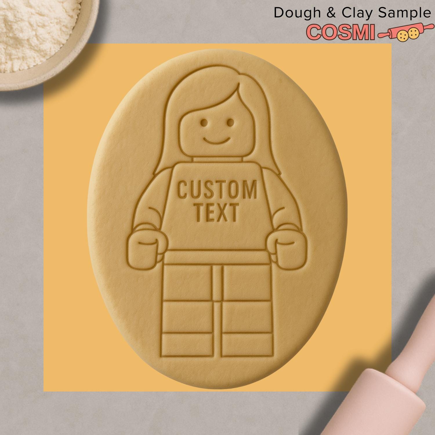 Custom Girl Figure Cookie Cutter | Personalized Text Biscuit Embosser | Toy Style Cookie Stamp | Custom Name Fondant Tool