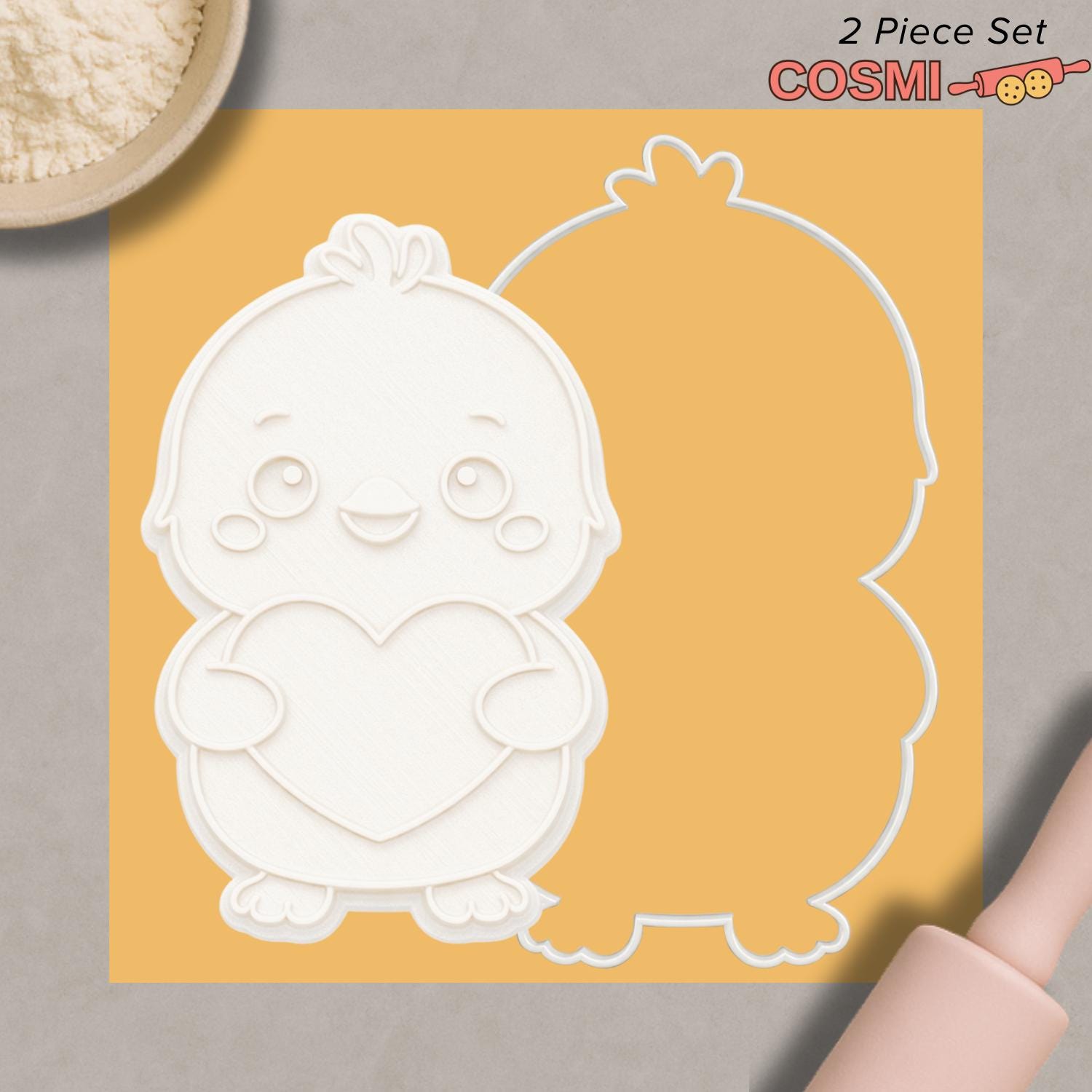 Chick Cookie Cutter & Embosser | Heart Chick Biscuit Stamp | Baby Animal Cookie Cutter | Kids Baking Tool | Love Theme Cookies