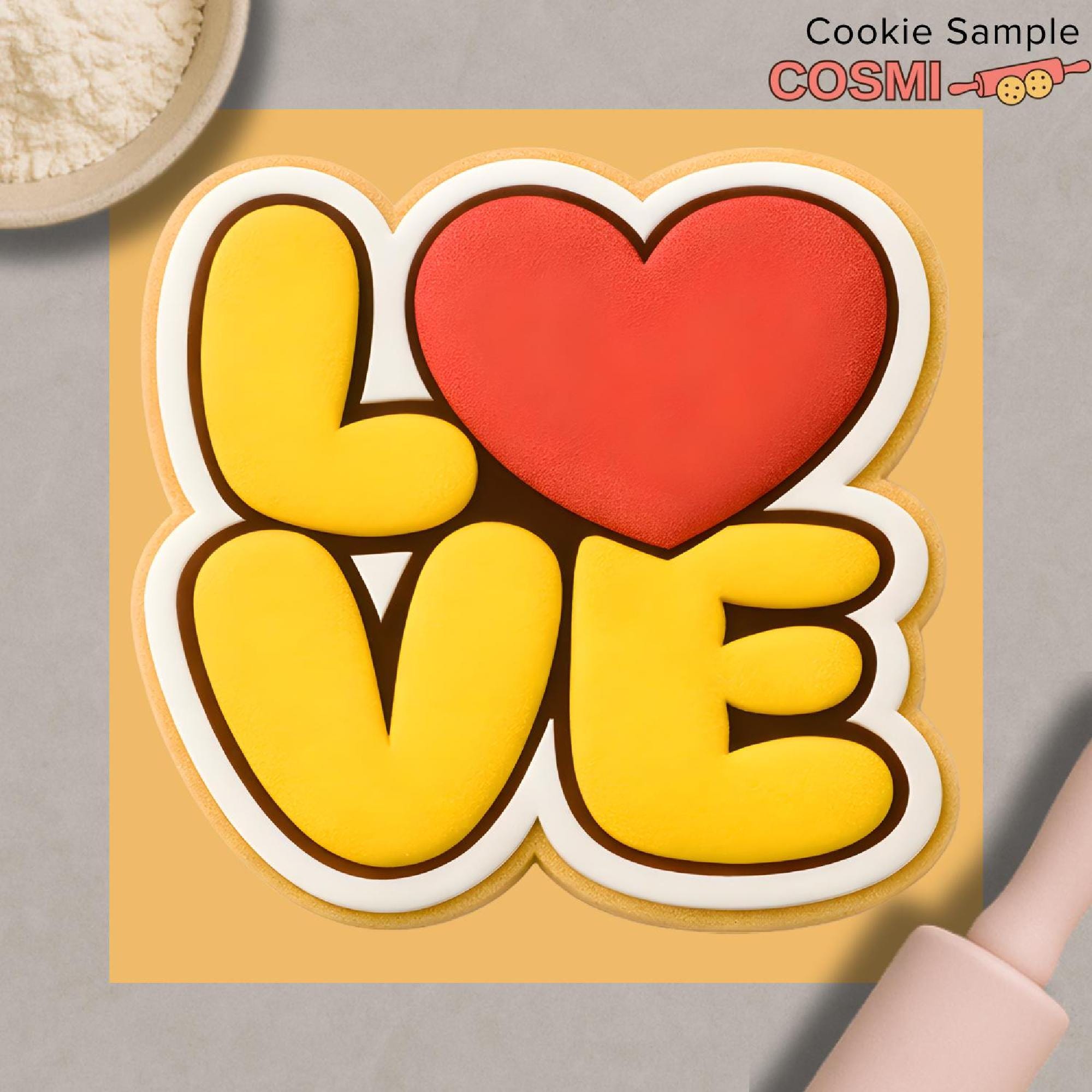 LOVE Cookie Cutter with Heart | Valentine’s Day Biscuit Embosser | Love Letter Fondant Cutter for Romantic Cookies