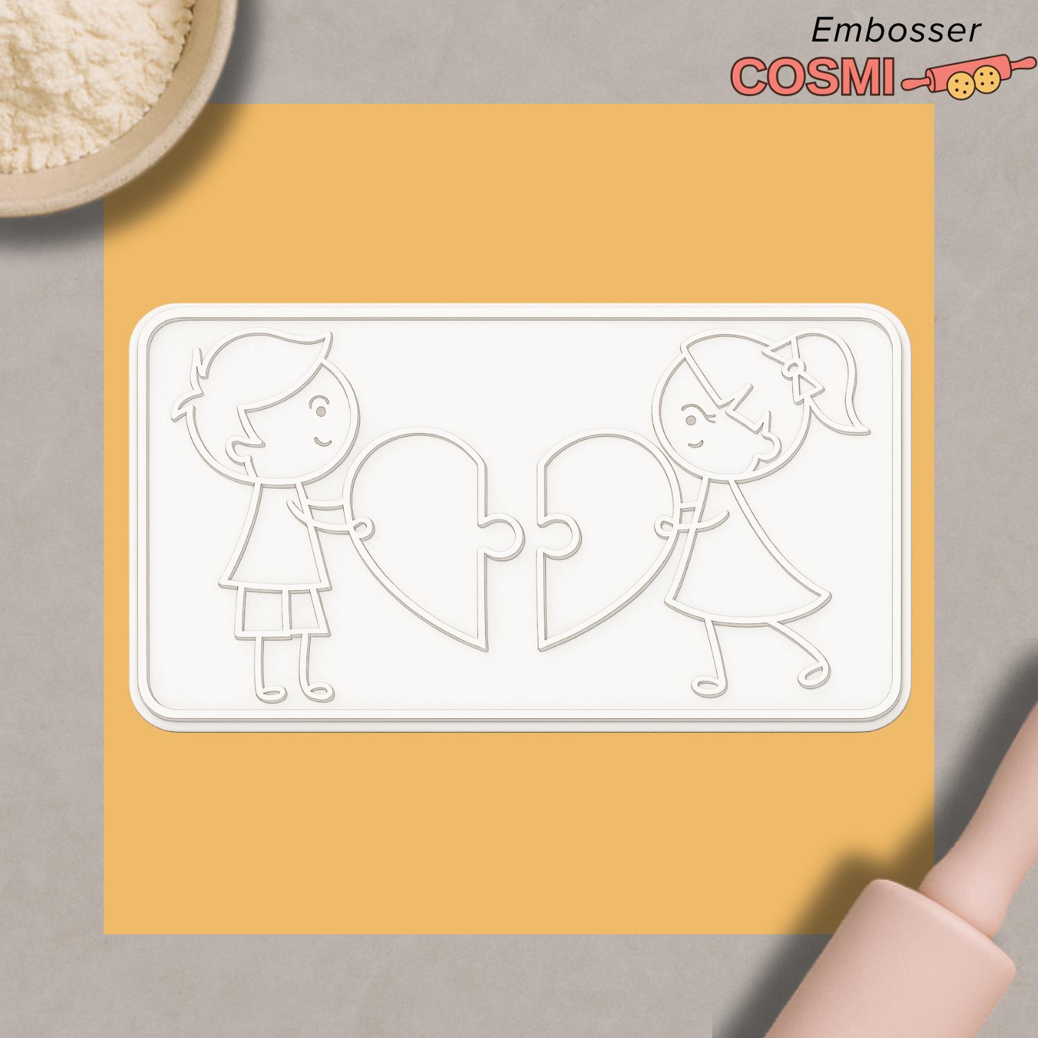 Celebrate love and togetherness with this adorable Puzzle Heart Couple Cookie Cutter & Embosser.